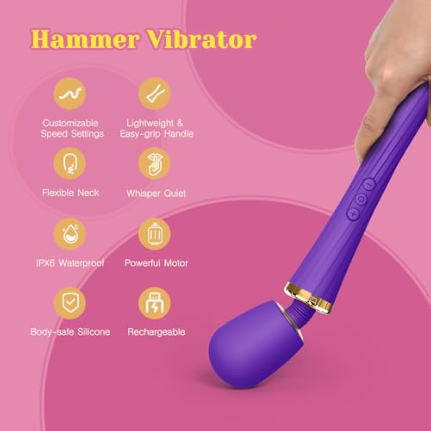 - Hammer Wand Vibrator: Equipped With A High-Performance Motor Delivering Up To 8000 Pulses Per Minute, This Wand Offers 5 Vibration Patterns And 3 Speed Settings For Personalized Pleasure. Operates At Less Than 50 Db For Discreet Enjoyment Anytime, Anywhere