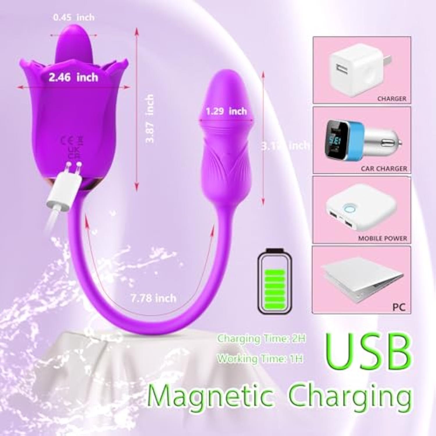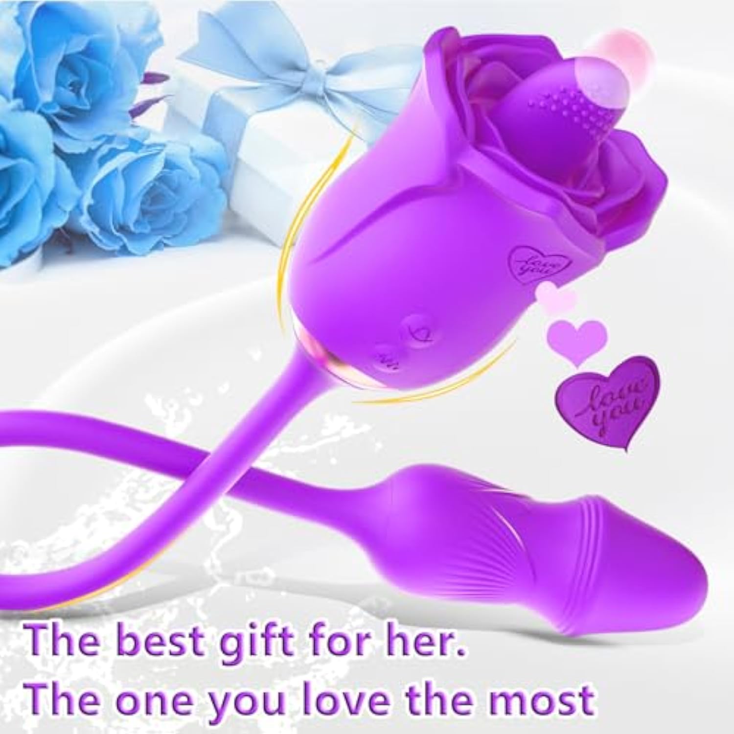 Sex Toy Dildo Vibrator 3In1 For Women - 10 Tongue Licking G Spot & Vibrating Dildo Clitorial Rose Clitoral Nipple Licker Sexual Stimulator, Adult Toys Sex Games For Couple'S Pleasure Rose Purple