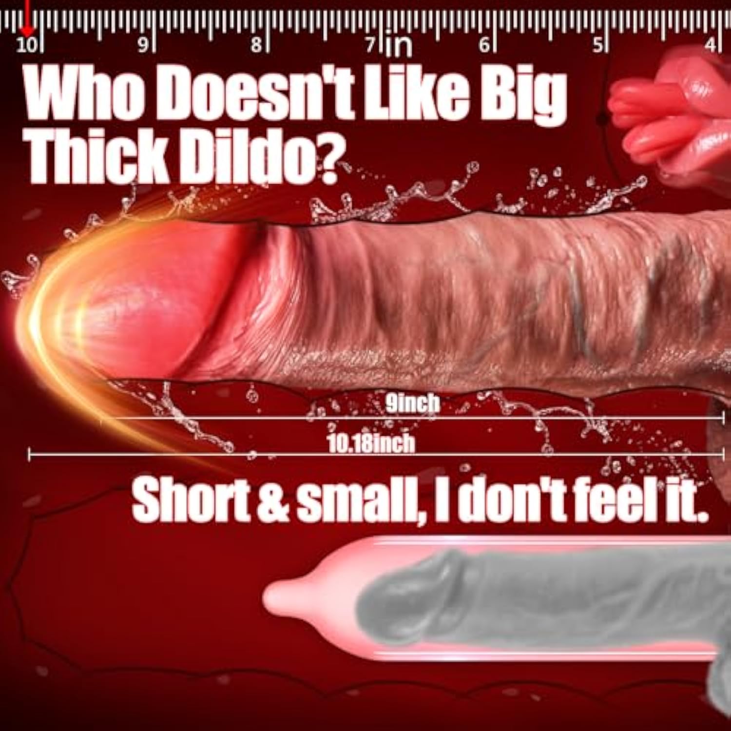 Sex Toy Thrusting Dildo Vibrators - 10.18'' Big Thick Dildo Licking Vibrator With 7 Thrusting & 10 Vibranting & Heating Licking Modes,Realistic Suction Cup Dildos Adult Toys For Women & Couples