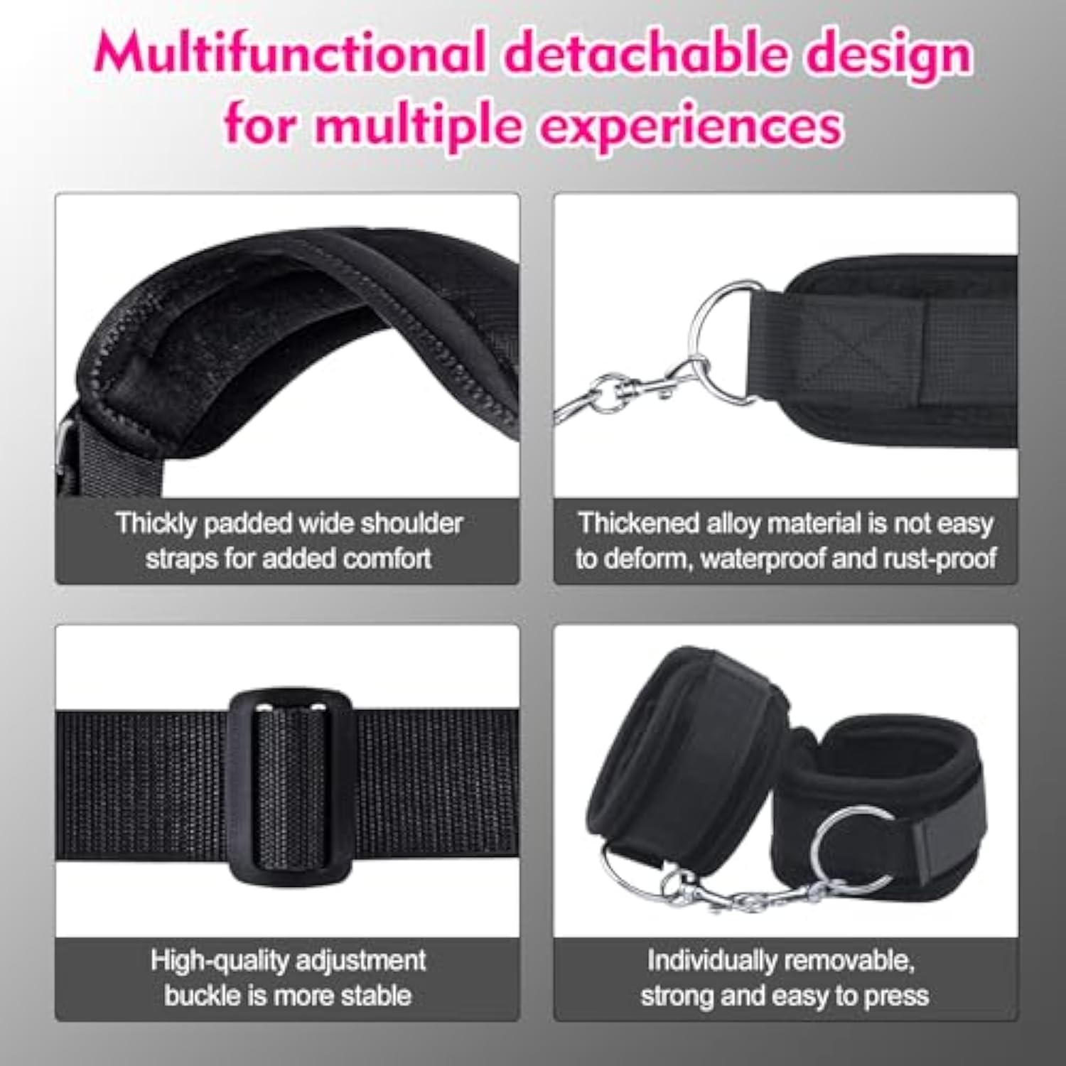- 2. The Sling Is Designed For Ultimate Comfort And Durability: This Padded Sex Sling Is Made Of Skin-Friendly Material, And The Thickened Neck And Padded Thigh Area Let You Feel Its Softness. The Metal D-Buckle And Abs+Pc Adjustment Buckle Are Sturdy And Durable, And The Bondage Belt Can Withstand 400 Pounds, Which Is Safe And Reliable, Allowing Your Partner To Enjoy All Kinds Of Naughty Fun. The Neck Support Even Allows Your Lover To Have A More Comfortable View While Watching All The Action.