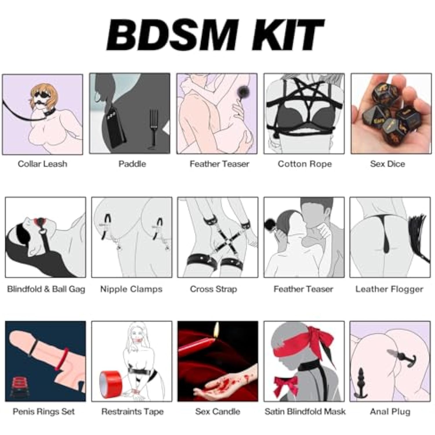 Sex Toys Bdsm Restraints Dildo, 36Pcs Kit Bondage Gear And Accessories For Adult Women And Couples (Blcak, 23 Piece Set)