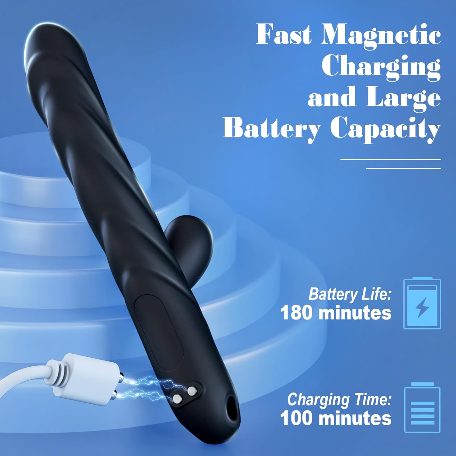 - Magnetic USB Rechargeable – Quick 100-minute charge provides up to 3 hours of continuous play. Ships in discreet packaging for privacy.