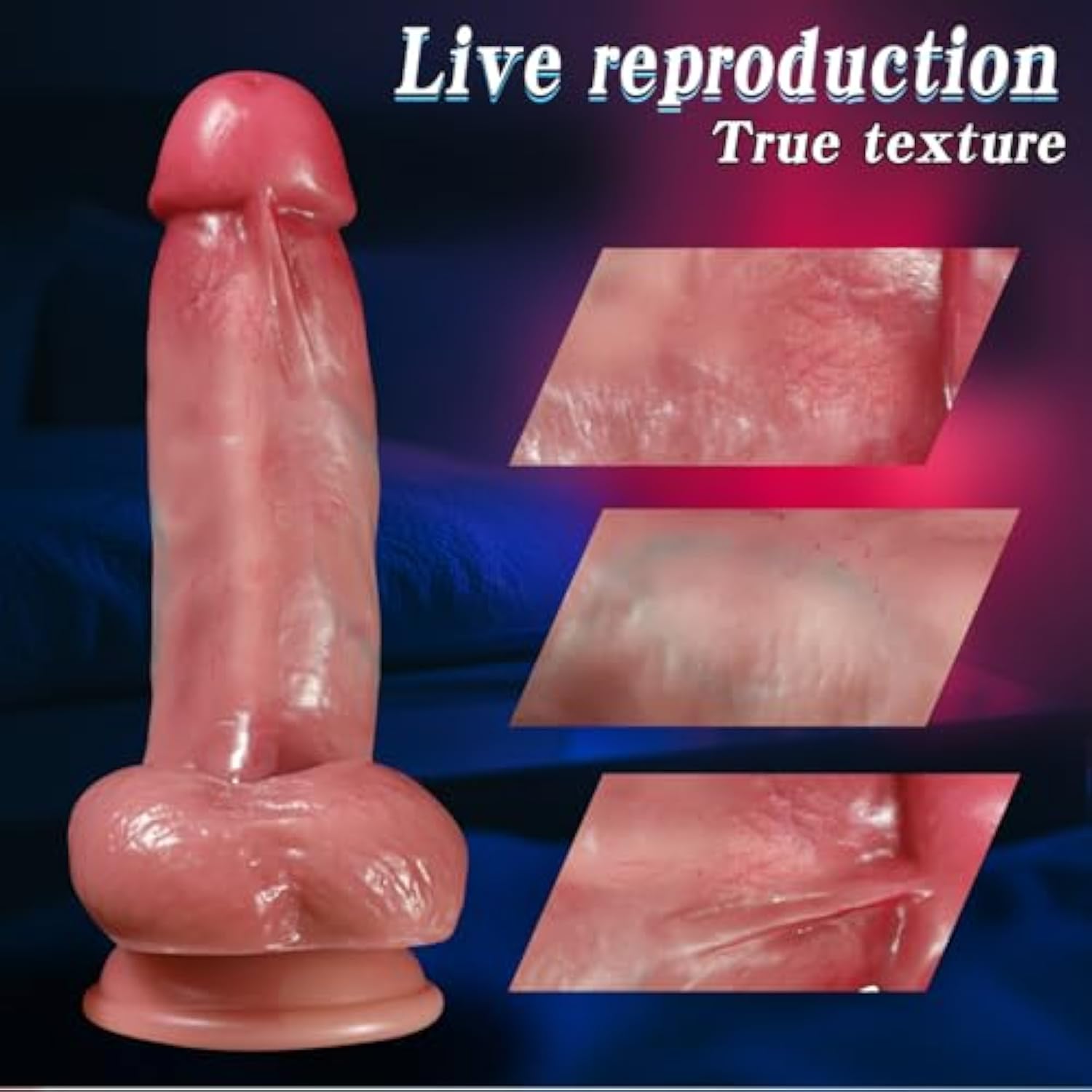 - ?Realistic Texture?The Dildo Features Lifelike Veins And An Exquisite Texture That Feels Like The Real Thing. Its Super Strong Adsorbability And Realistic Appearance Will Give You An Exciting And Genuine Experience. It Can Be Safely Used With Both Water-Based And Silicone-Based Lubricants