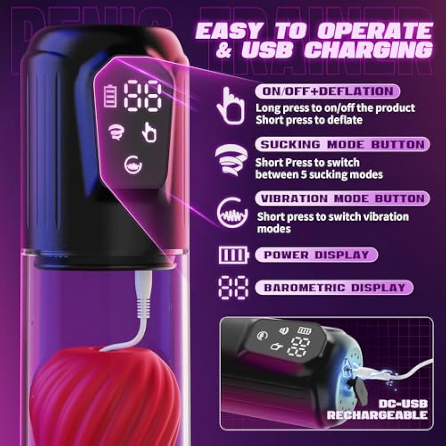 - 5 Vibration 5 Suction Sex Toys - The Male Sex Toys Feature Powerful Silent Motors With 5 Vibration And Suction Modes. Rose Sucking Sex Toy Has 5 Pressure Levels To Gradually Train The Erection Function Of The Penis. You Can Start From Mode 1 Of This Adult Toys And Increase The Intensity Gradually To Train Your Penis. Make Sure You Use Plenty Of Water-Based Lube(Included Lube Is A Great Bonus). With Rose Sex Toys Stimulator, This One Is Another Adult Sex Toys Games You Can Try.