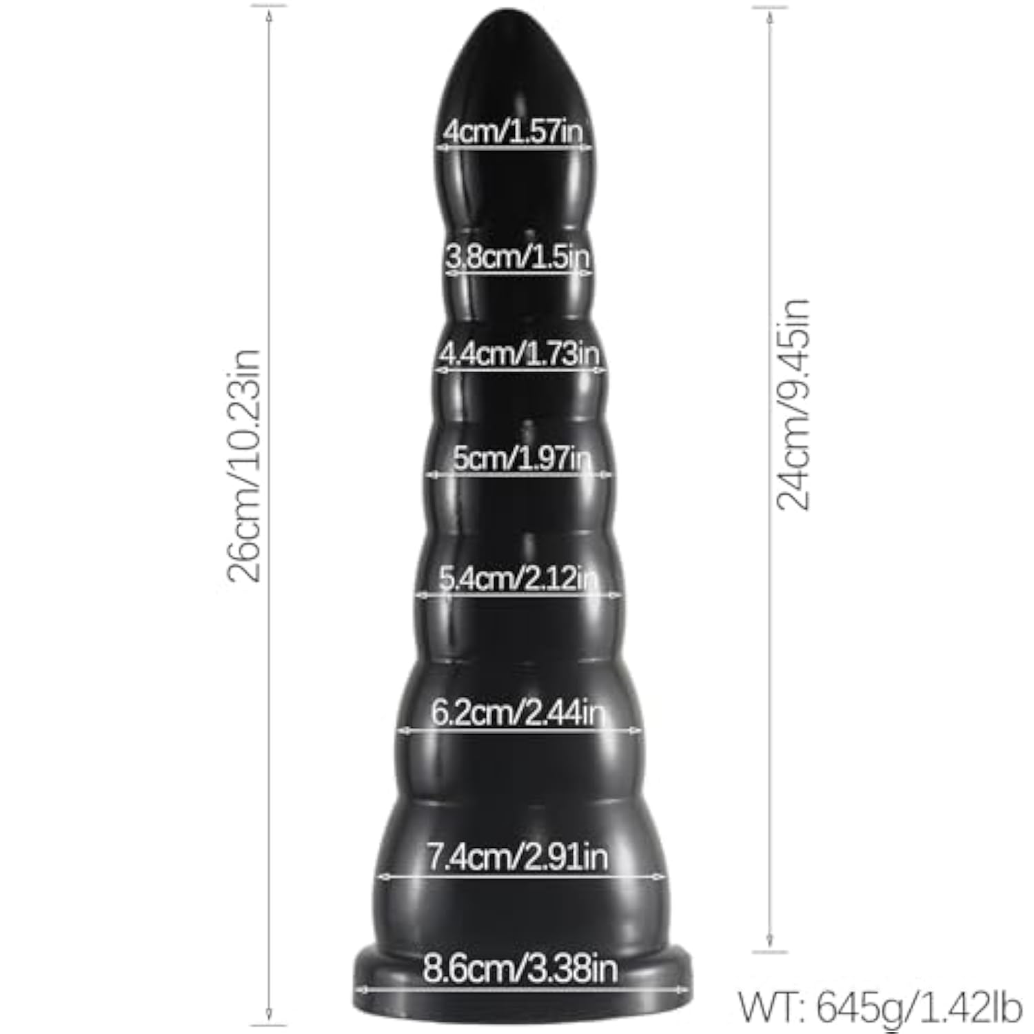 | Huge Anal Plug - This Butt Plug Measures 10.23*3.38 Inches And Weighs 1.42Lbs, Different-Size From The Top To The Bottom, Offers A Full And Satisfying Sensation For Those Who Enjoy Anal Play. Its Length And Girth Provide Ample Stimulation. Not Only Sex Toy For Women, But Also For Men, Gay, Lesbian, Couples. | | Strong Suction Cup For Hands-Free Play - This Anal Plug Has A Powerful Suction Base, Keeps The Plug Exactly Where You Want It, You Can Use It Hands-Free, Liberation Of Your Hands. | | Flexible And Smooth - This Anal Sex Toys Is Nondeformable Whether You Pull Or Grab It Hard. The Smooth Surface Makes You To Insert Easily. The Length And Thickness Is Enough For Vagina Or Anal Deep Massage. Different-Size Designed For Better Anus Expand, Which Helps You To Reach The Orgasm You Desire. | | 100% Waterproof - Recommended Use It With Water-Based Lubricant For Better Experience. Or You Can Have Some Different Pleasure While You Taking Shower Or Siting On The Bathtub. After Used It Can Be Cleaned With Soap Water Easily. | | If You Have Any Question, Please