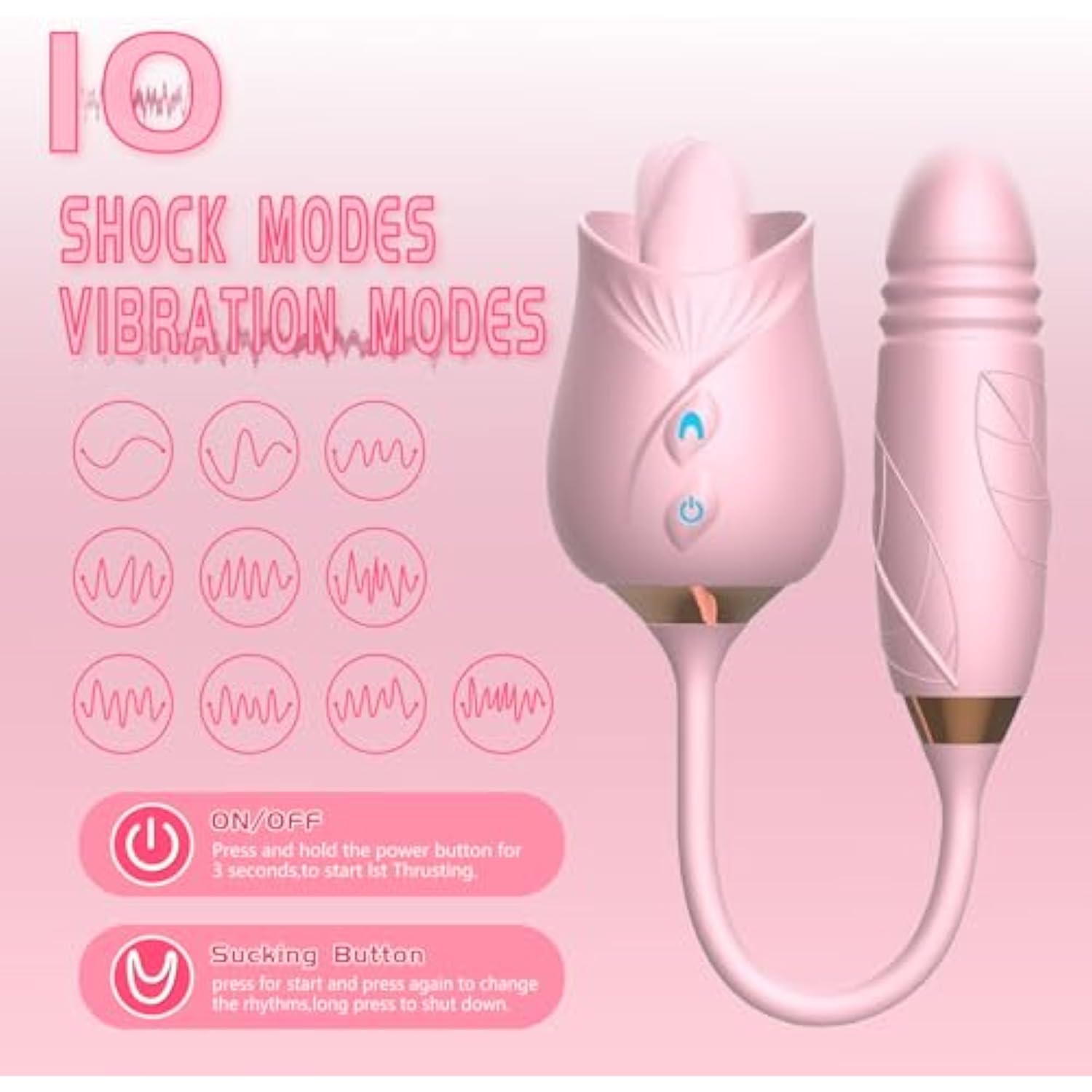 - Features 10 Modes: Relax With Our Rose Sextoy, A Sexual Stimulator For Women Featuring 10 Tongue-Licking Modes And 10 Thrusting G-Spot Vibrator Modes. It Simultaneously Stimulates The Clitoris And G-Spot/P-Spot, Reaching Every Nerve Ending. This Vibrator For Women Is Great For Solo Use Or For Couples To Enjoy Together.