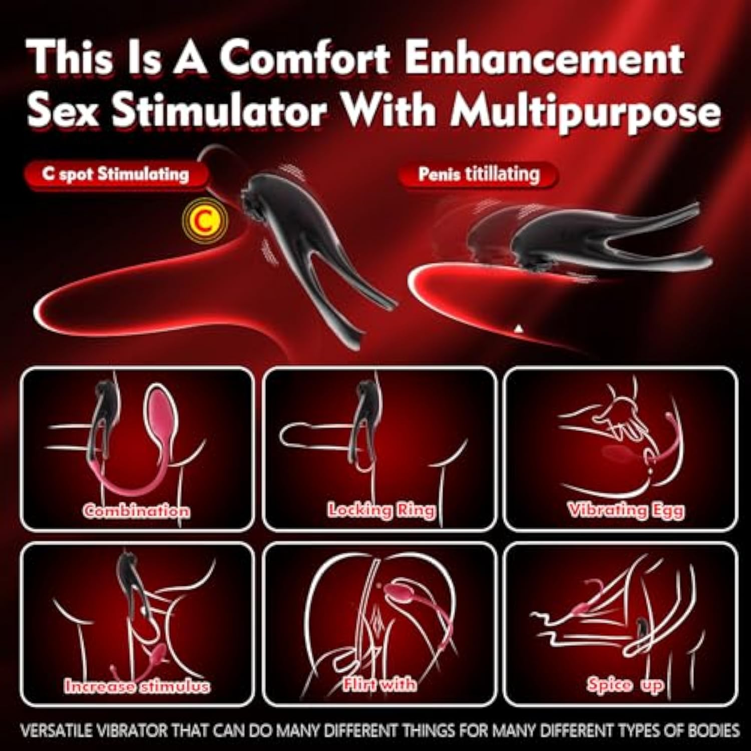 - Foreplay Vibrator For Couples - This Sex Toy Means There Are Two Toys When You Use Separately, Highly Improved The Comfort For Female Solo. Can Stimulate The G Spot And At The Same Time Stimulate Other Female Sensitive Parts When Couple Use And Can Reach Simultaneous Vibration For G Spot, Clitoral C Spot And Anal ,Penis,Scrotum Stimulation. And Get More Flirt Between Both. Great Addiction For Female-Self Care Alone And Interactive Couple Sex Toy . Hit The Right Spot Accurately And Swiftly.