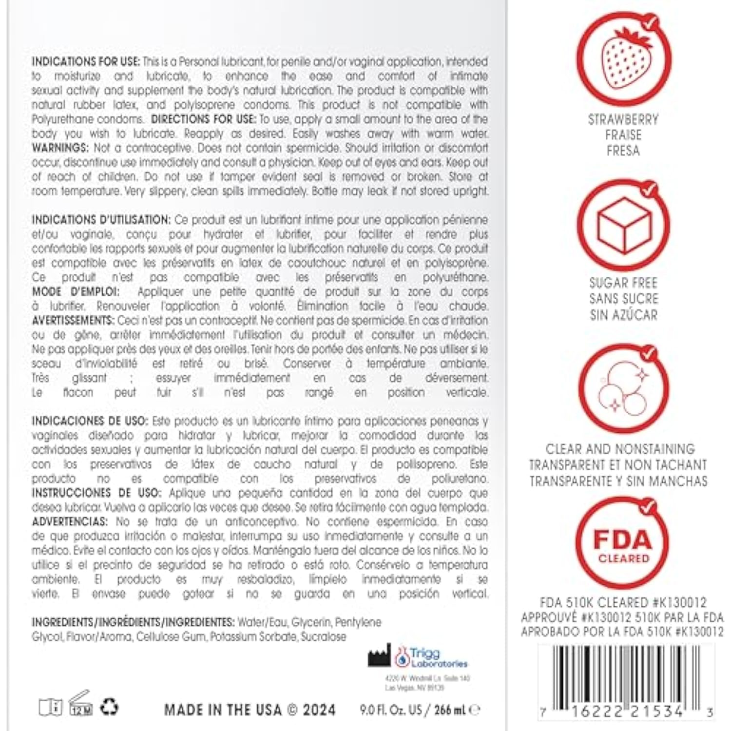 | Juicy Strawberry Flavor: Features A Sweet Strawberry Flavor And Aroma To Add A Playful, Sensual Twist To Your Intimate Moments. | | Water-Based Formula: Lightweight And Sugar-Free, This Delicious Lube Has An Ultra-Silky Texture To Enhance Pleasure And Make Every Moment More Enjoyable. | | Compatible Safe: Safe To Use With Latex And Polyisoprene Condoms, Designed For Foreplay, Oral, And Intercourse. | | Premium, Body-Friendly Ingredients: Made With Glycerin And Pentylene Glycol For A Smooth Glide. Paraben-Free, Hypoallergenic, And Easy To Clean With Warm Water. | | Made In The Usa: Flavored Lubes Are Proudly Made In The Usa And Manufactured With Trusted Quality And Over 30 Years Of Manufacturing Expertise.. Packaging May Vary. | |