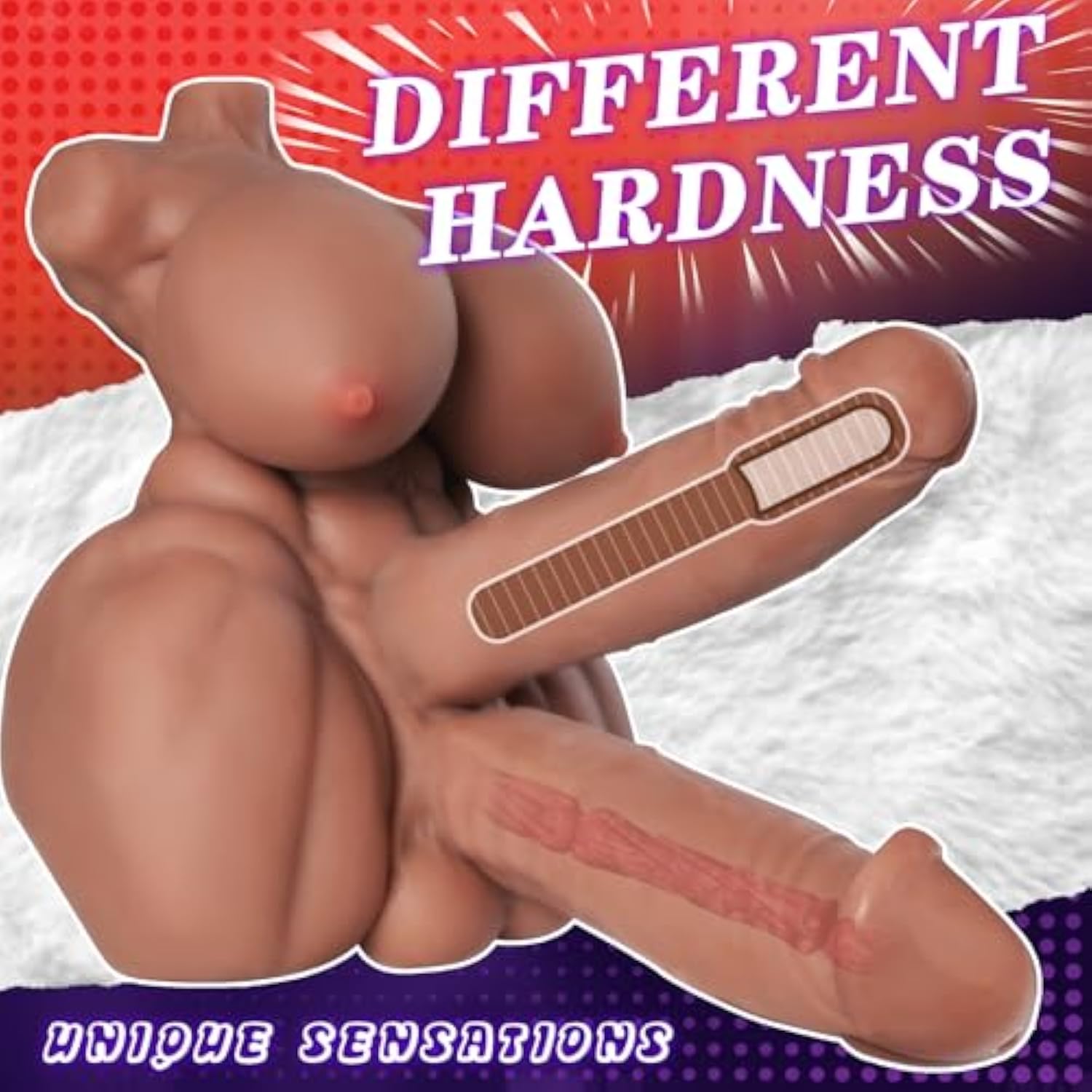 Shemale Sex Doll Two Dildo Male Masturbator, Futa Sex Toy Torso With Flexible Dildo For Women, Love Doll For Men With Realistic Tight Channels (Wheat)