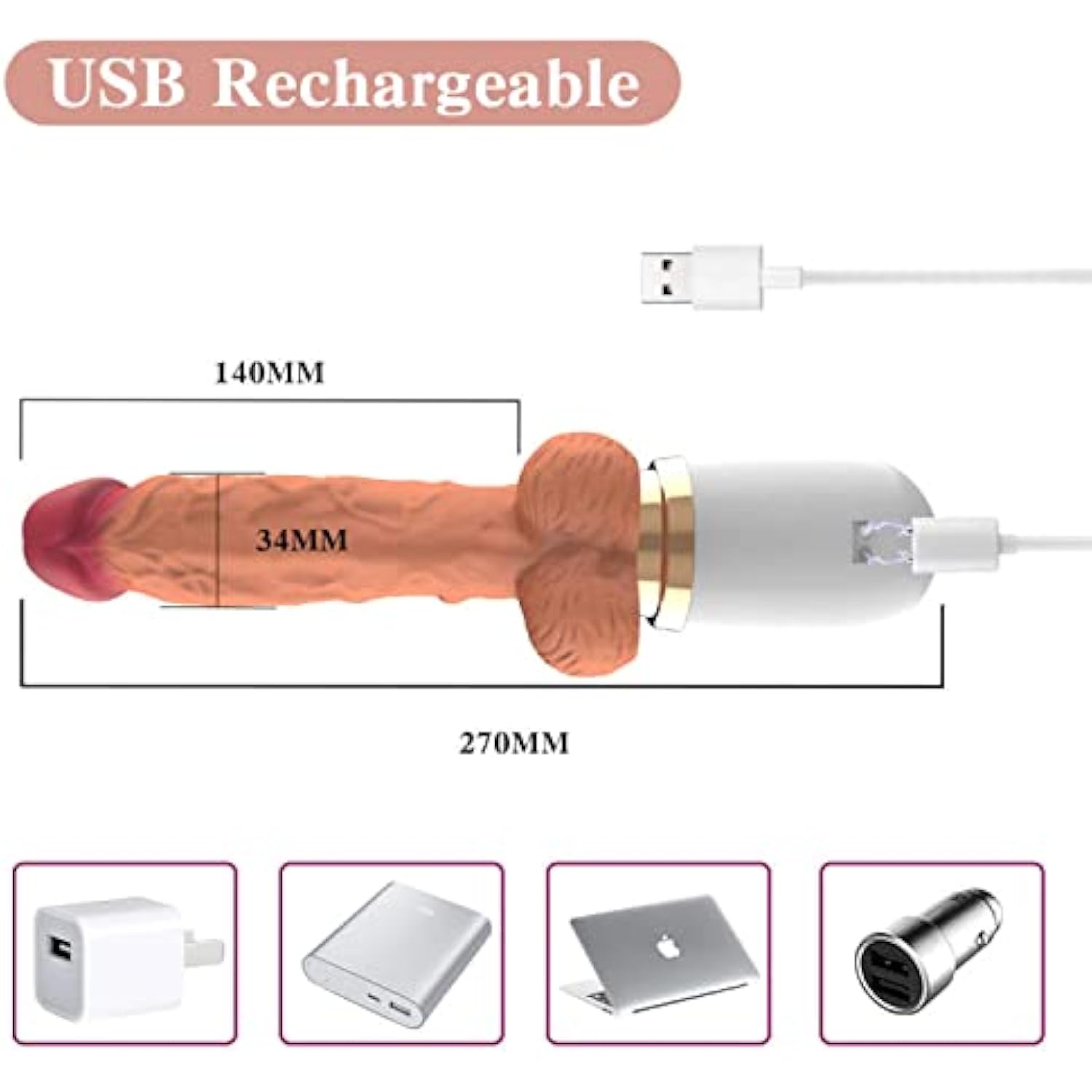 Silicone Automatic Thrusting Dildo with Wireless Remote, 10 Vibration Modes & 3 Telescopic Modes and Heating Skin