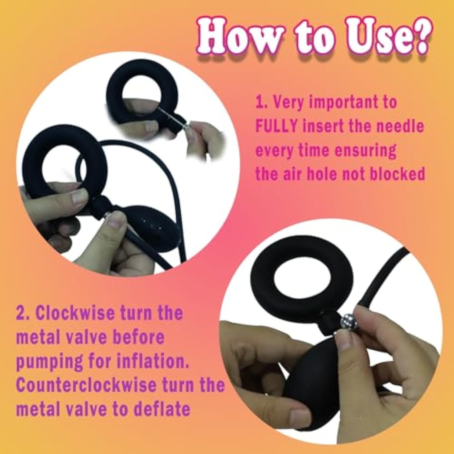 - How To Use And Notice: Before Inflating This Cock Ring, Make Sure To Fully Insert The Needle Inside, And Tighten The Metal Valve On The Pump Clockwise. Simply Turn The Metal Valve Counterclockwise For Deflation. Some Users May Find Hard To Inflate Or Not Work, Because The Needle May Not Fully Inserts In The Ring.
