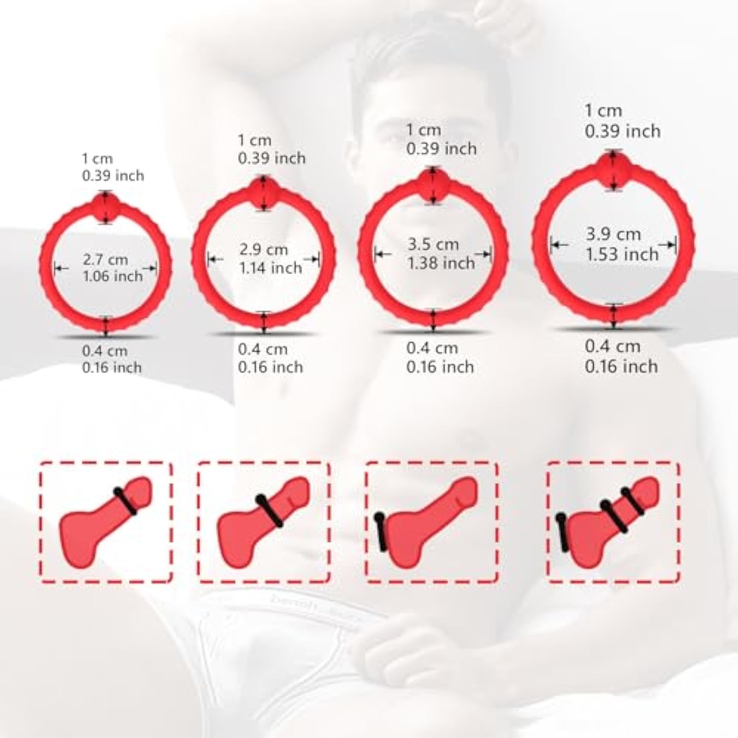 | 1.The Penis Ring Is One Of The Simplest Sex Toys For Men Or Couples, Quickly Increasing Happiness And Satisfying Partners | | 2.Unstretched Inner Diameter = 1.06 Inches, 1.14 Inches, 1.38 Inches, 1.53 Inches, | | 3.Silicone, Smooth Surface, No Burrs?Skin-Friendly, Odorless?Washable All Over Easy To Clean | | 4.Enhances Sexual Pleasure - Restricts Blood Flow To The Penis Instantly Make Your Penis Harder And Bigger | | 5.It Can Be Used With Lubricant For A Better Wearing Experience | |