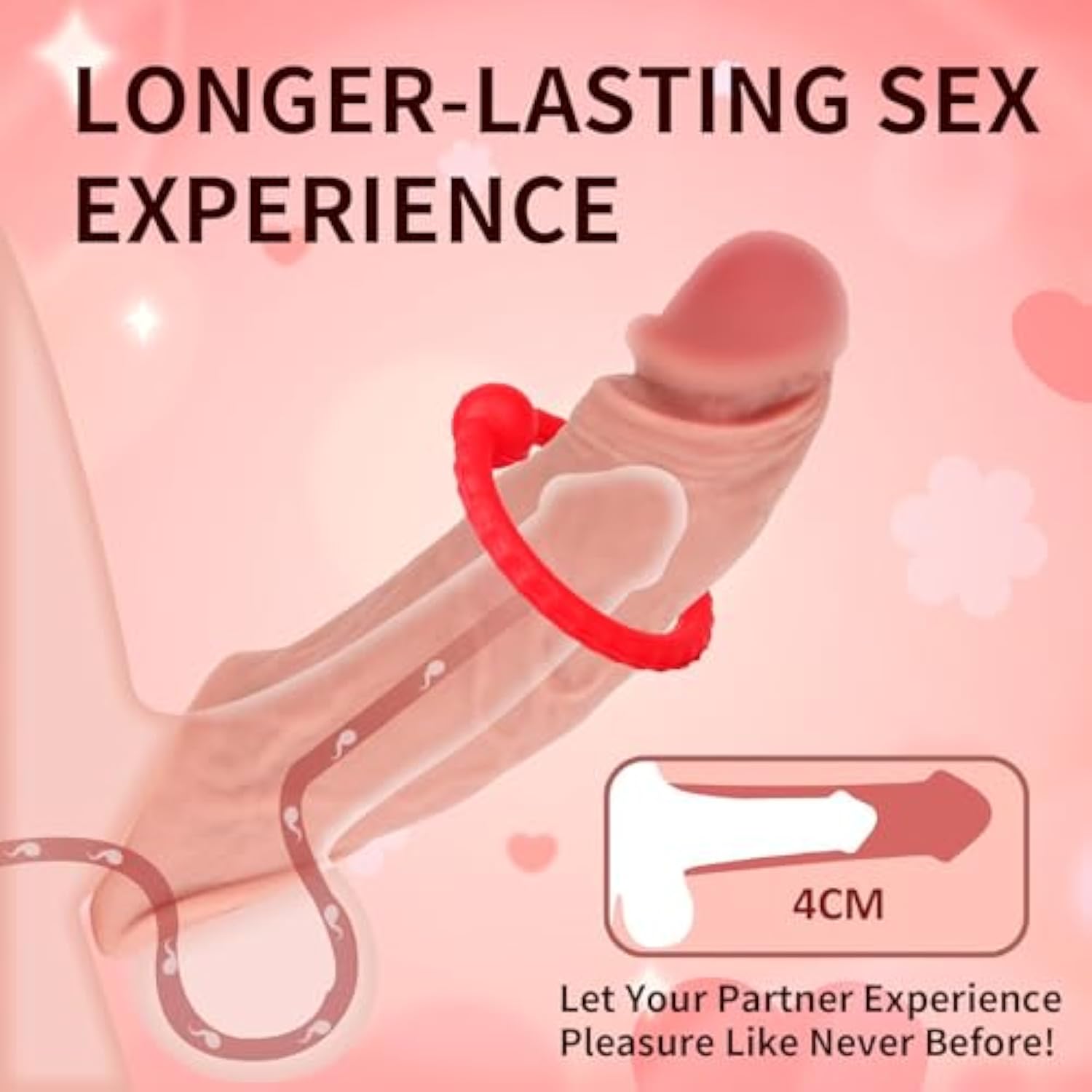 Silicone Cock Ring Penis O Ring With Massage Ball And Patterns For Male Penis Erection Extension Long Lasting Firmness Enlarger Powerful Adult Toys (Red)