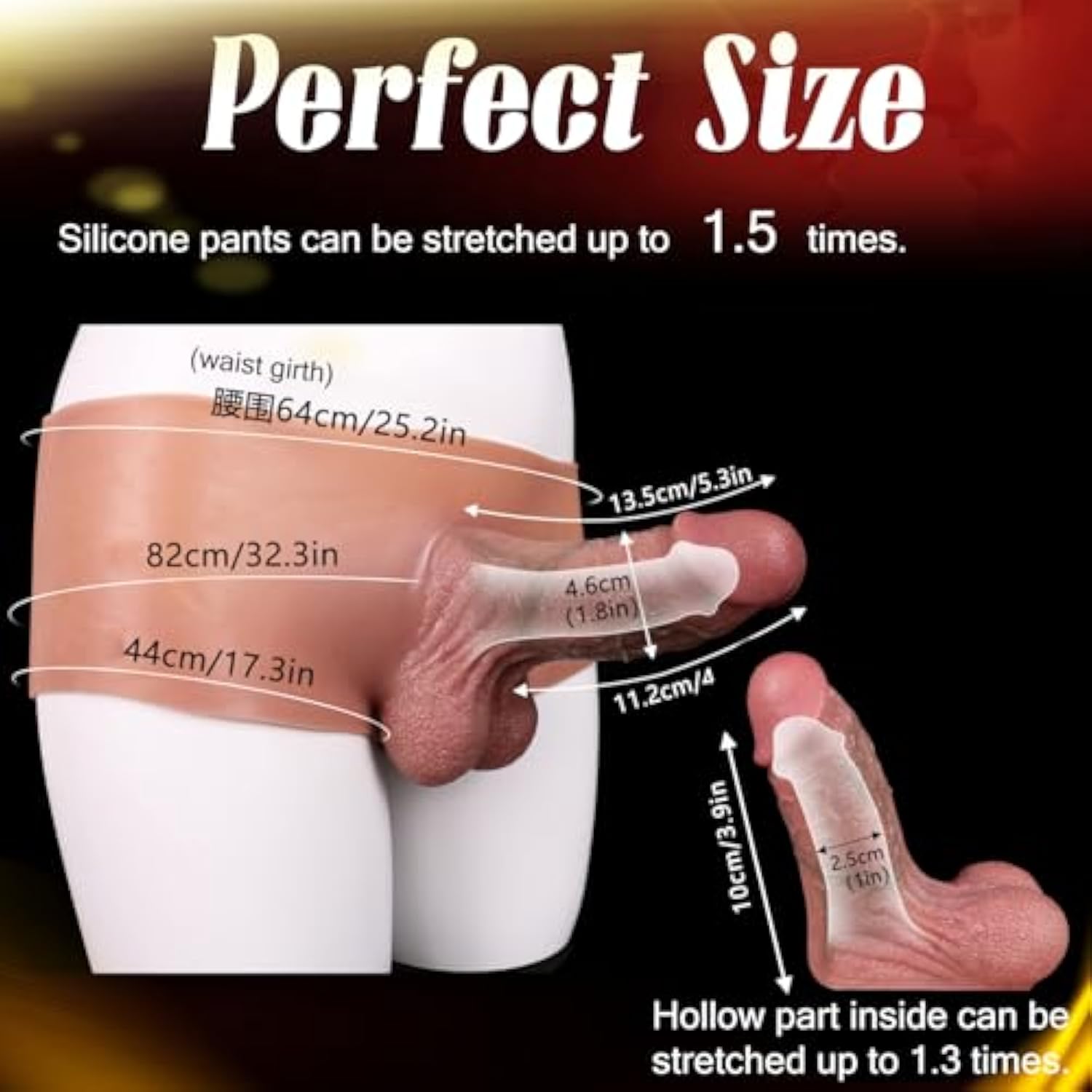 | Silicone Soft Material:This Realistic Penis Extender Cock Sleeve Is Made Of Liquid Silicone,Soft Stretchable And Skin Safe,Soft Enough To Give Your Partner Real Feeling | | Enlarge And Extend Versatile Penis Sleeve:This Reusable Cock Sleeve Penis Enlarger Is Designed To Increase Both The Length And Width Of Men Penis?Make Man Feel More Confidence And Women More Pleasure | | Universal Size Unisex Toy:The Hollow Dildo Outer Total Length Is13.5Cm( 5.3Inch),Its Effective Length Is About 11.2Cm(4Inch).The Internal Hollow Sleeve Total Length Is About 10Cm(3.9Inch),Its Diameter Is About 2.5Cm(1Inch).Silicone Sleeve Pants Is Stretchable,It Can Stretch To 1.3 Times | | Easy To Use And Clean:This Penis Pump Pants Is Whole Body Waterproof,Easy To Clean And Use,Light And Comfortable To Wear | | Protect Privacy Package:Our Products Waterproof Penis Sleeve Comes With Privacy Package ,Required With The Use Of Lubricants For Better Experience.Lubricants Does Not Included | |