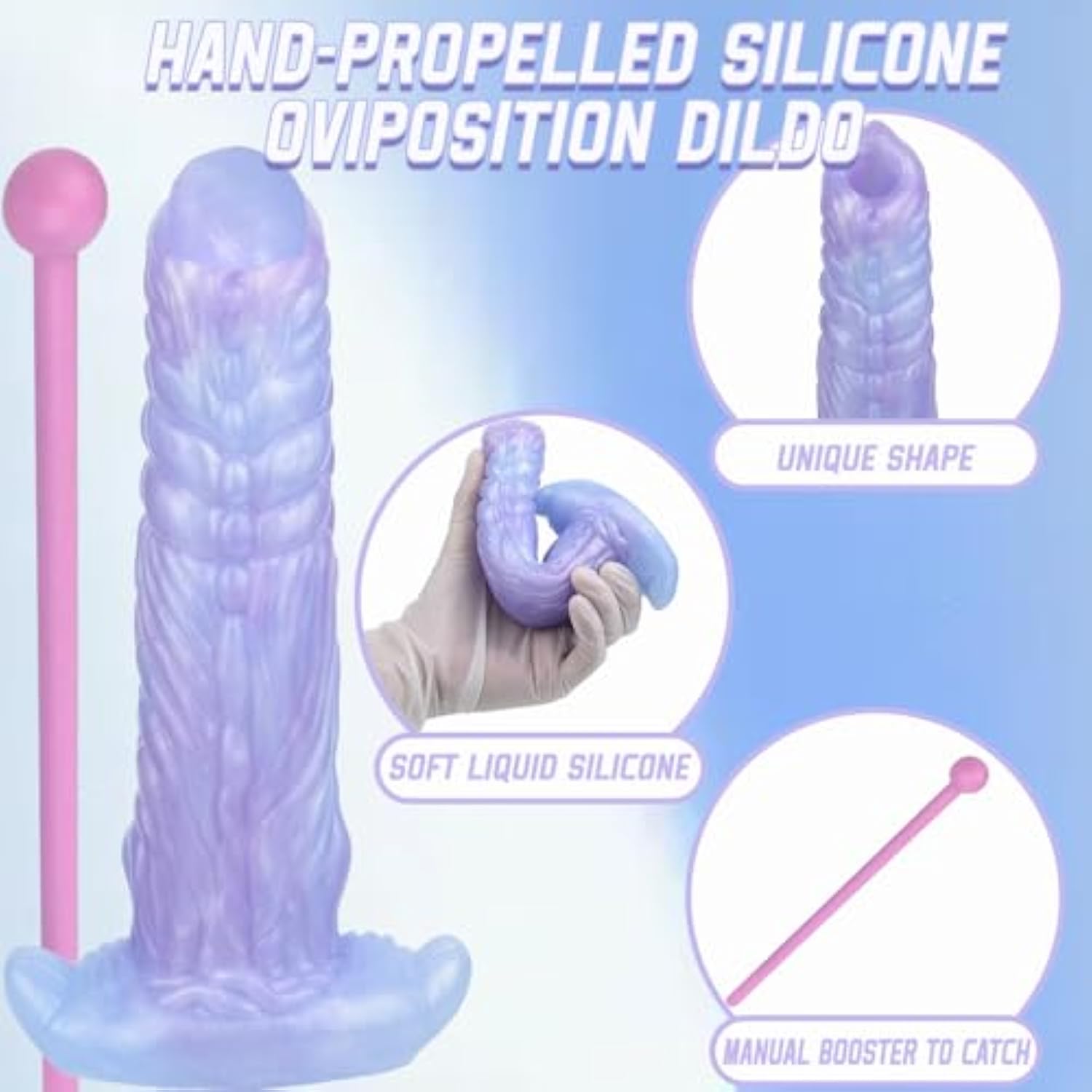 Silicone Oviposition Dildo, Hand-Propelled, Unique Shape, Soft Liquid Silicone, With Manual Booster