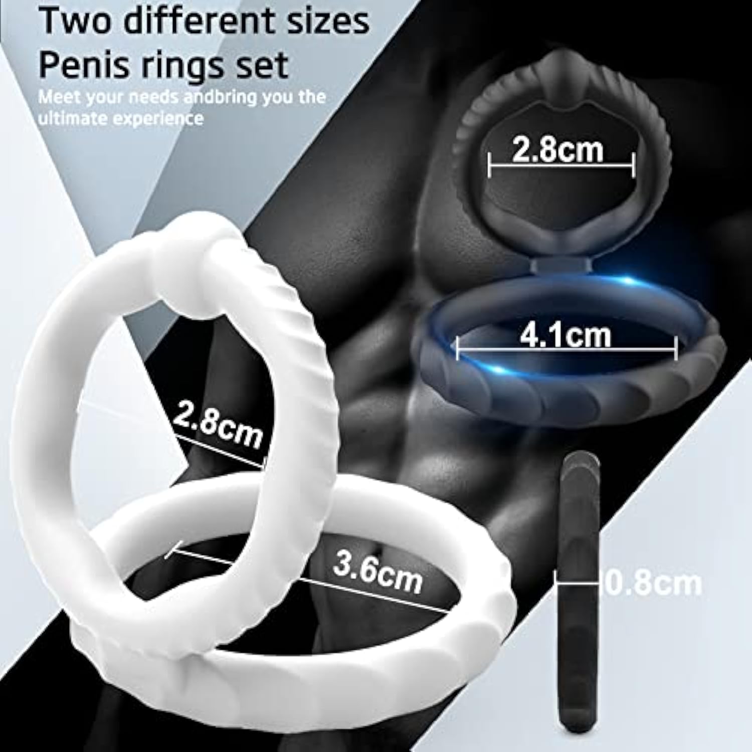 | ?2 Pcs Of Rings?: You Have Your Choice Of Which Size Ring You Want To Use. | | ?Size Information?: Black And White Two-Piece Set. Black Inner Diameter Is 28Mm And 41Mm. White Inner Diameter Is 28Mm, 36Mm. | | ?Note? : Don'T Use It Too Long. In Case Of Any Bad Condition In Use, Please Stop Immediately. | | ?Safe Materials?: Rings Kit Are Made Of High-Quality Silicone, Which Is Hypoallergenic, Skin-Safe, Extremely Stretchable But Sturdy Enough | | ?Private Packing ?: Our All Adult Sex Toys Will Be Delivered To You In Discreet Packaging And We Take Your Privacy Very Seriously. It Is A Surprise Gift For Yourself Or Friends! | |