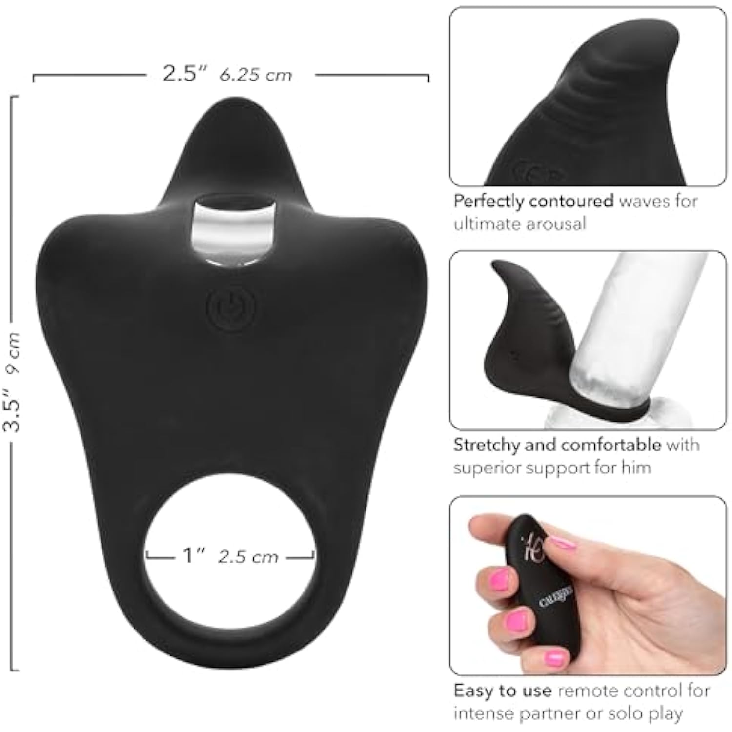 Silicone Rechargeable Remote Pleasurizer – 12 Function Vibrating Waterproof Pleasure Ring – Silicone Clitoral Massager Sex Toy For Couples - Black