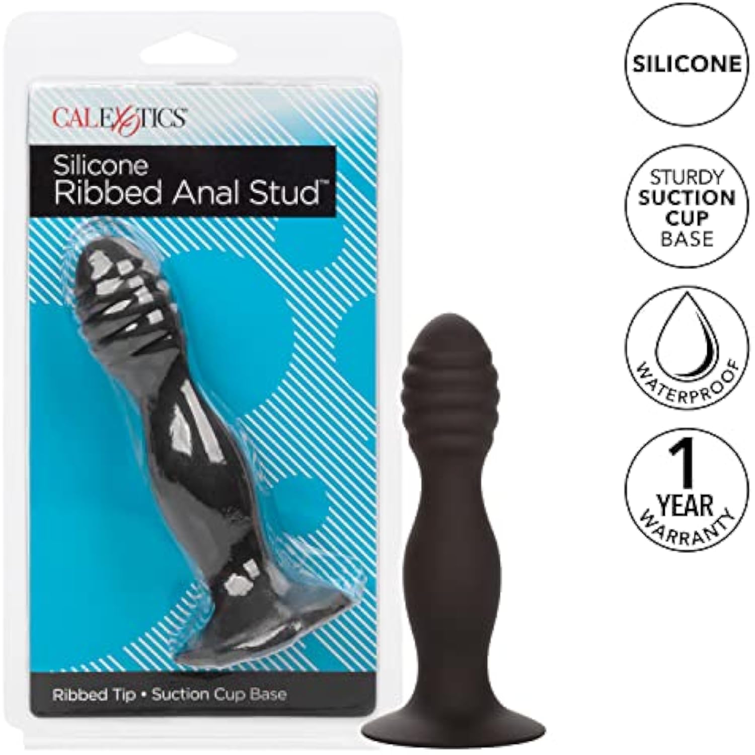 Silicone Ribbed Anal Stud, 5.25 Inch Butt Plug With Suction Cup Black - Se-0416-25-2