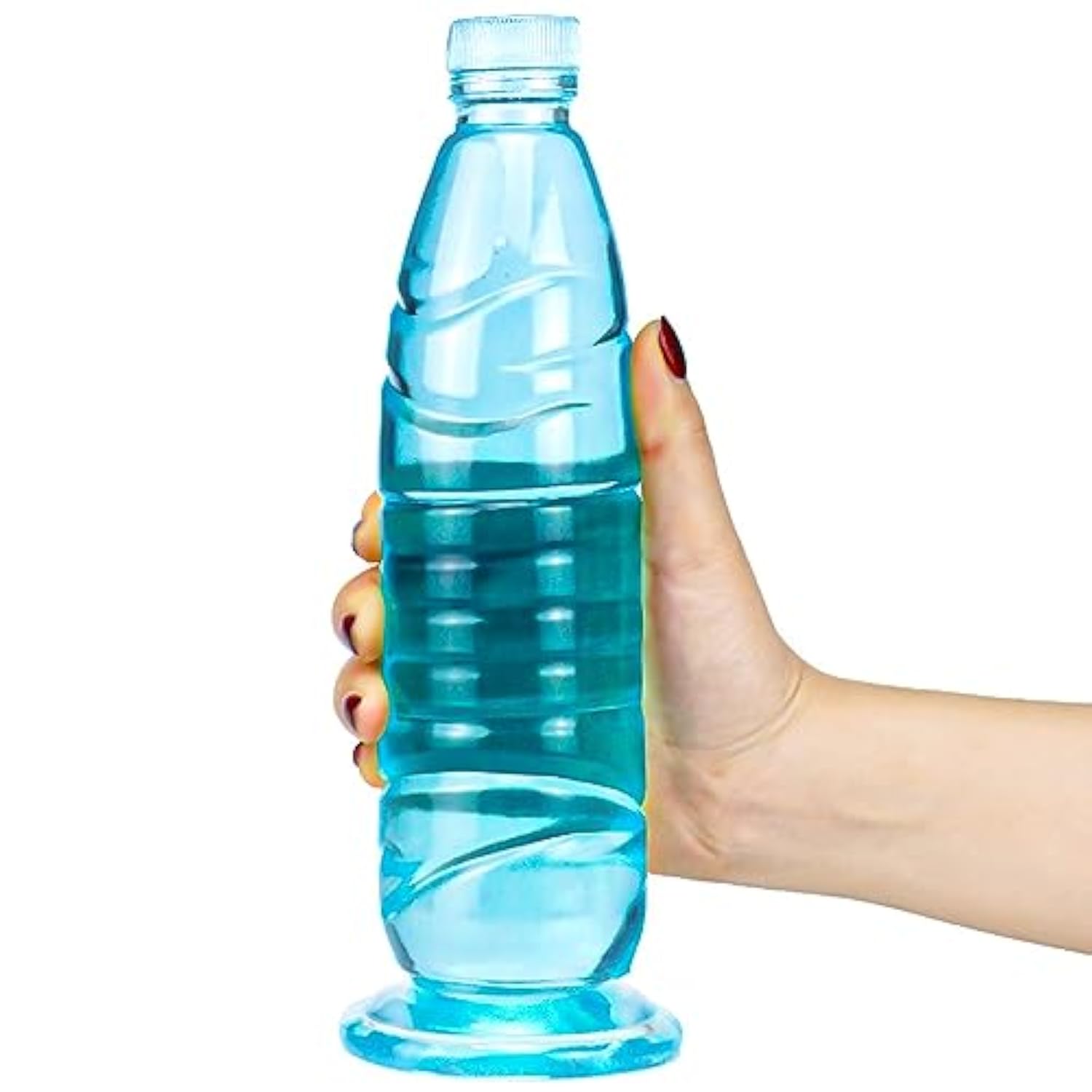 Silicone Sex Toy Anal Plug Realistic Dildo, 9.65 Inch Imitation Mineral Water Bottle Silicone Dildo, Striped Layered Design Experience Double Pleasure (Blue)