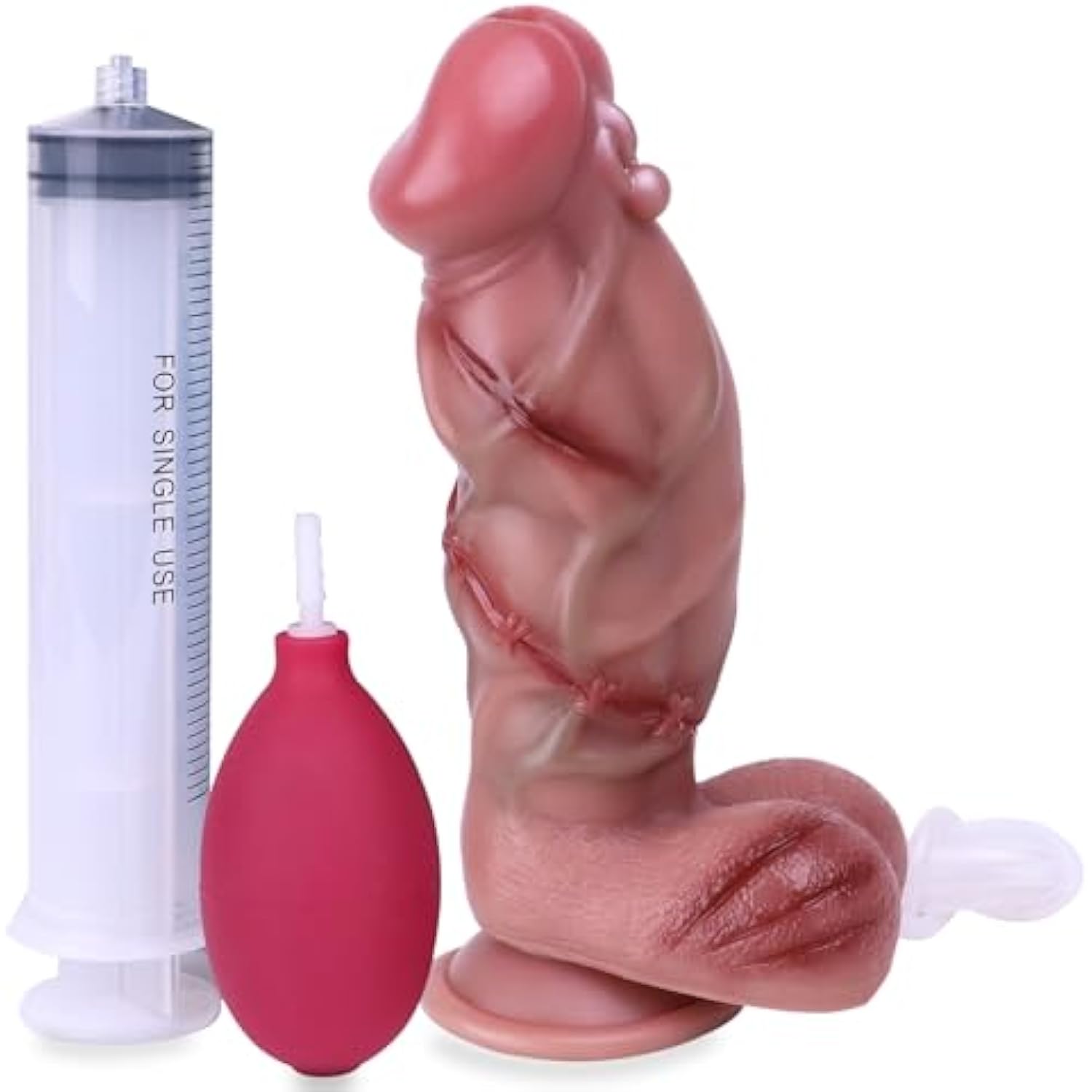 Silicone Squirting Scar Dildo Ejaculating Sex Toy,7.68" Ejaculating Cumming Dildo, Soft Women Vagina Stimulate,Suction Cup Anal Jetting Adult Toy Cums Fake Penis
