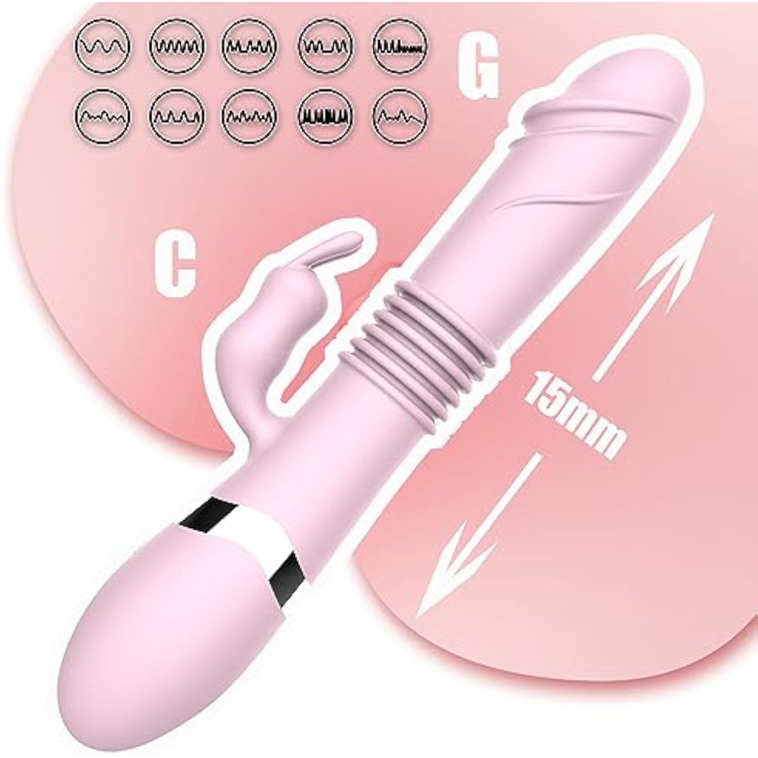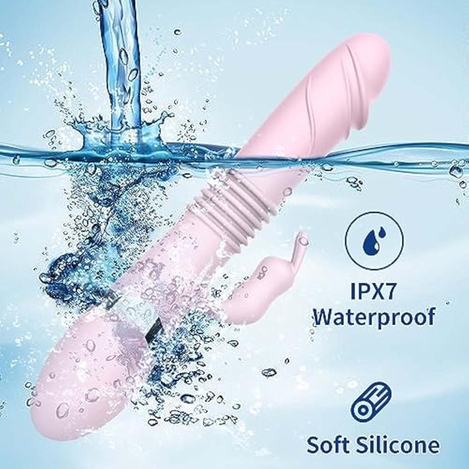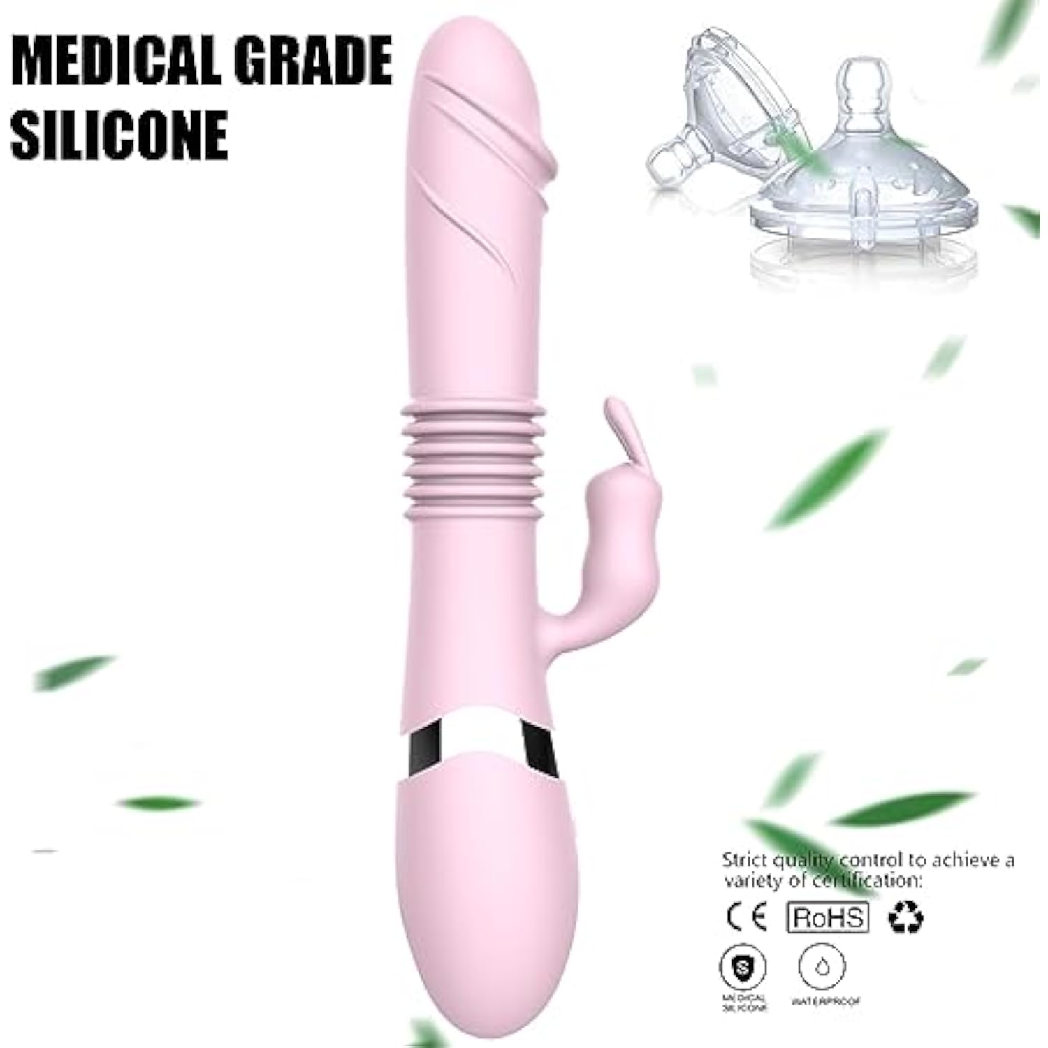 Silicone Thrusting Vibrator Dildo For Women, Clitoral Butt Nipple G Spot Stimulator With 10 Powerful Vibration Thrust And Lick Modes, Rechargeable Rabbit Vibrators Adult Sex Toys For Couple(Pink)