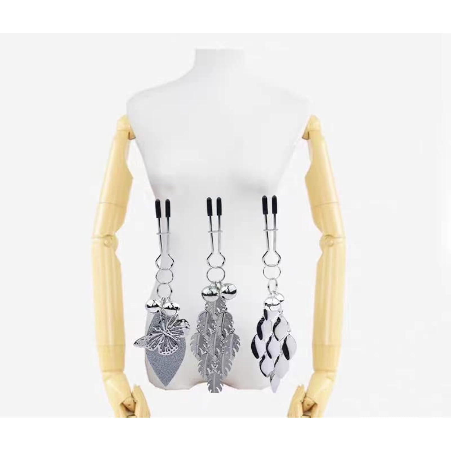 Silver Butterfly Pendant Bell Nipple Clamps, Adjustable Breast Nipple Clamps, Papilla Straighteners Corrector Nipple Shield Nipple Clamps Adjustable Breast Clamps (H)