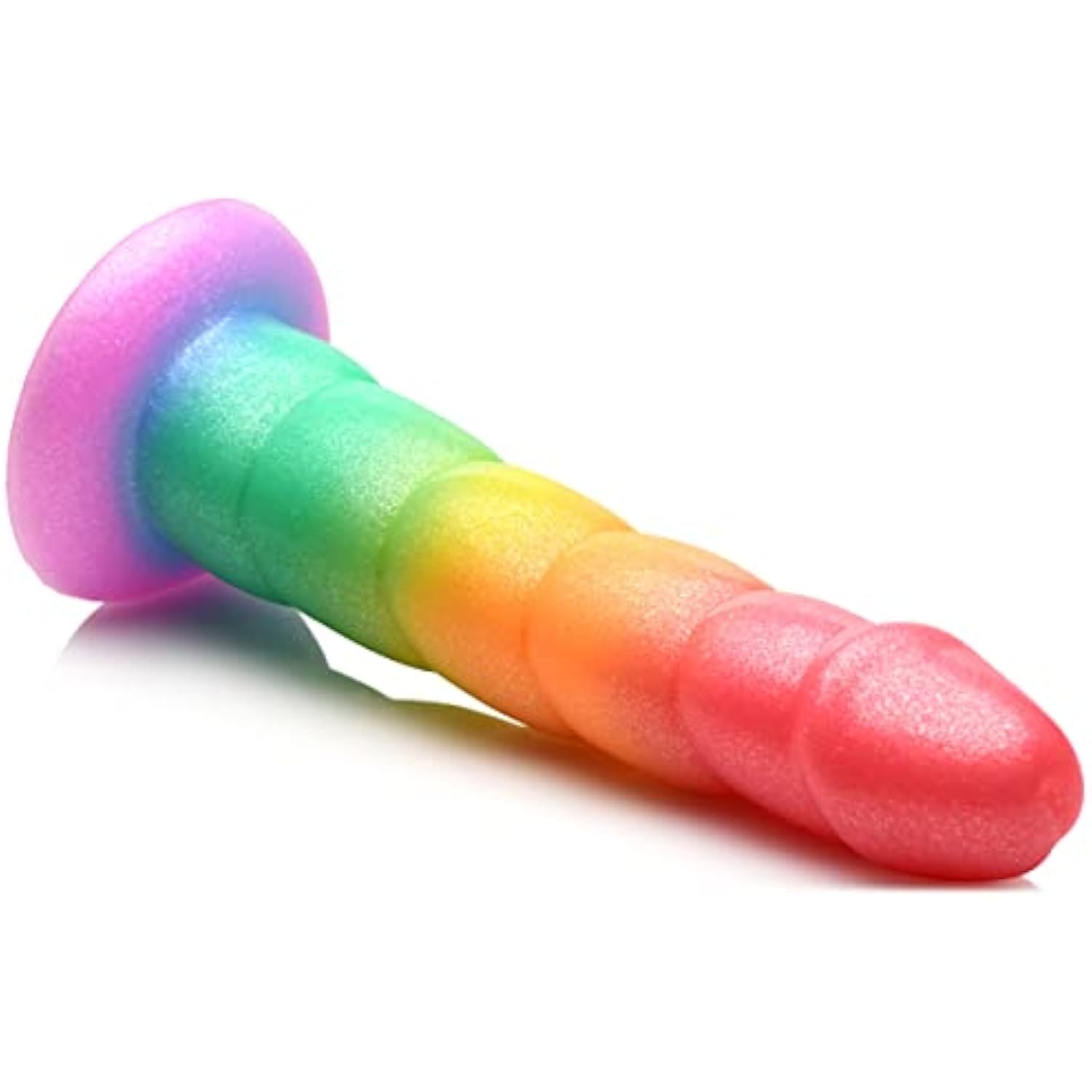 Simply Sweet Swirl Rainbow Silicone Dildo For Men Women & Couples. Colorful Swirled Strong Suction Base Dildo. 1 Piece, Rainbow.