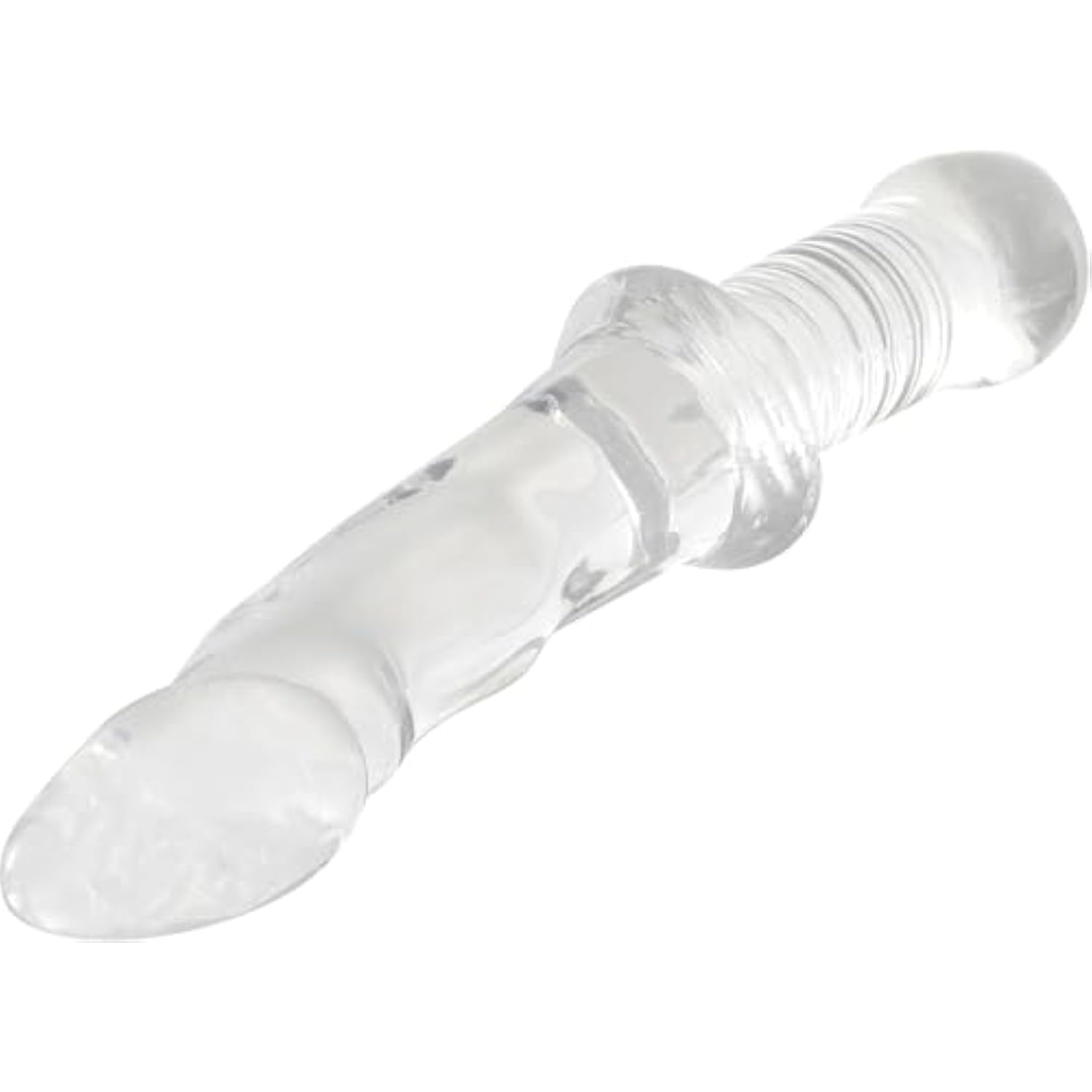 - Large Clear Dildo Anal Plug Has A Threaded Handle For Easier Grip During Use
