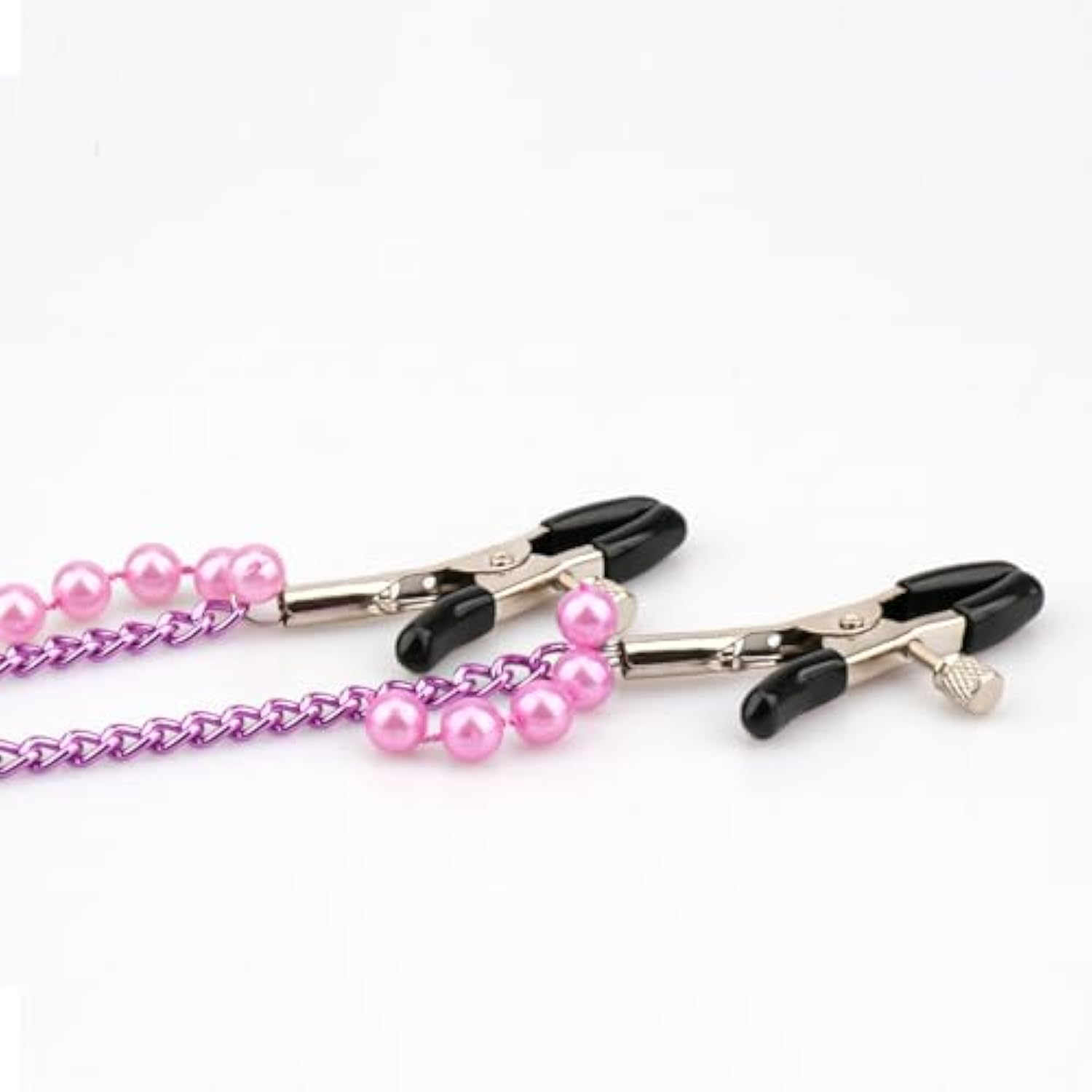 Sm Adjustable Stainless Steel Nipple Clamps Sexual Pleasure For Women/Men Non-Piercing Decorative Clip Set (Purple Chain)