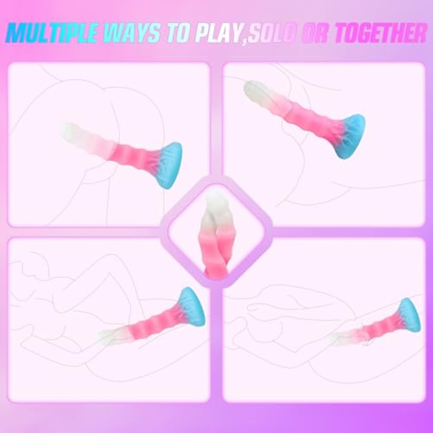 Small Dildo Fantasy Monster Dildo, 7.08 Inch Beginner Silicone Dildo With Luminous Pink, Strap On Dildo Realistic Dildos, Anal Plug G Spot Adult Sex Toy For Men Women And Couples