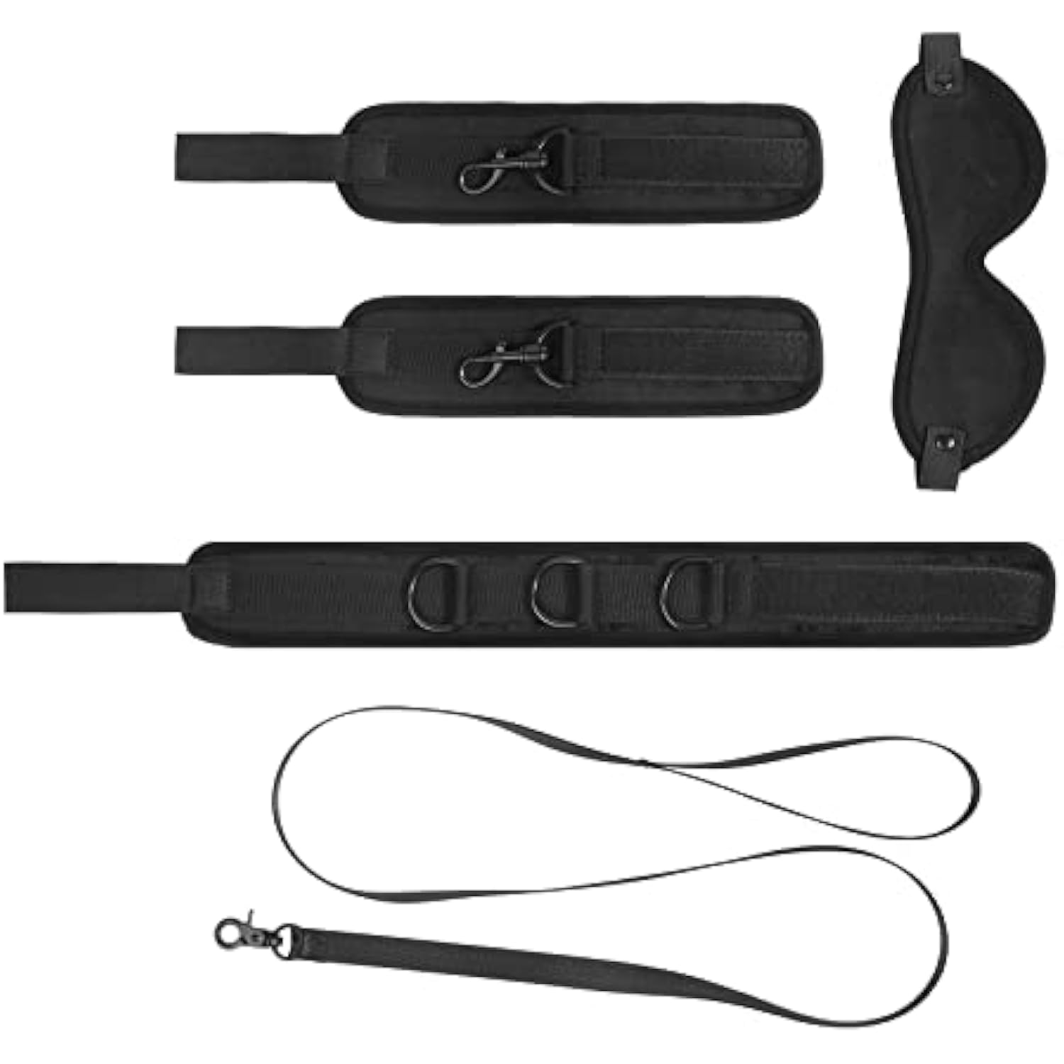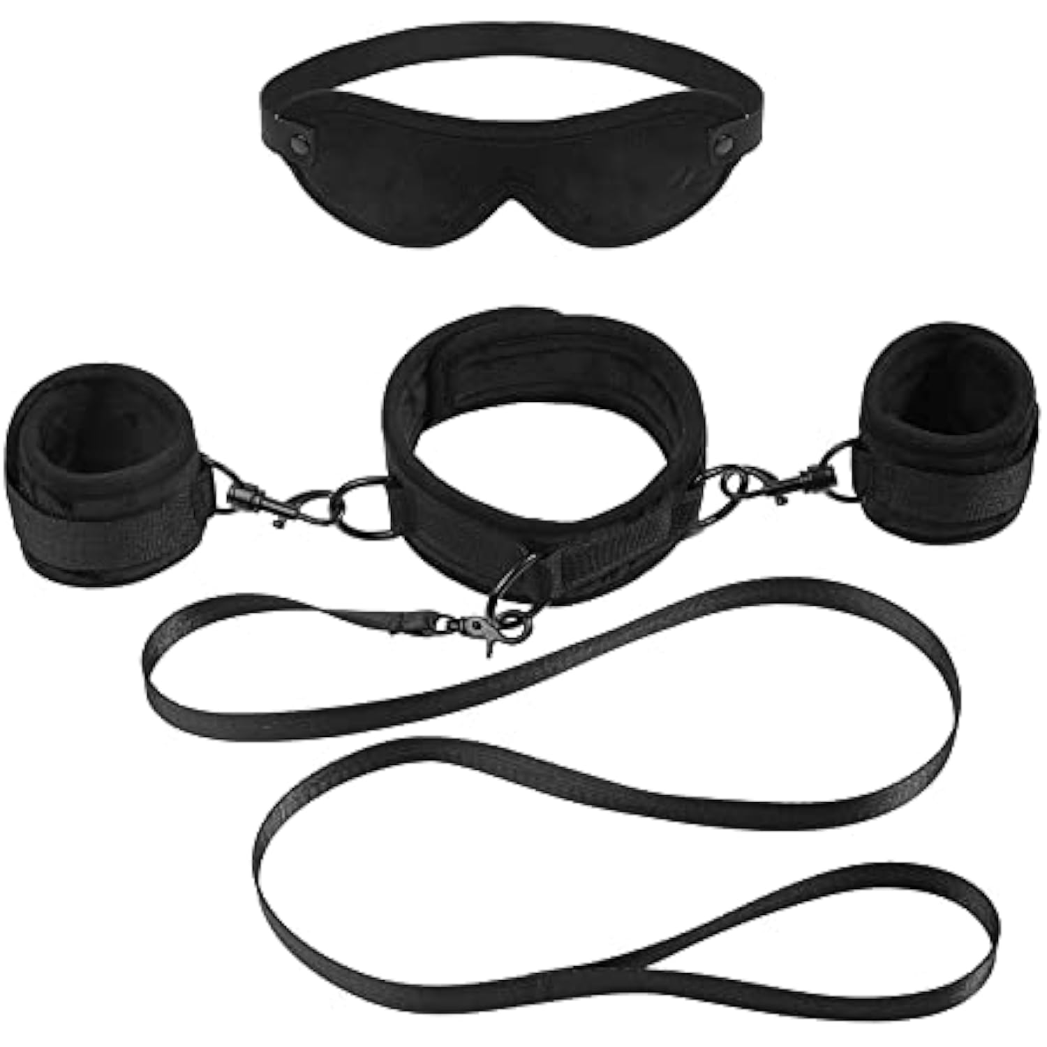- Strong, Soft And Adjustable Collar And Handcuffs With Velcro Closure For A Comfortable, Tailored Fit. Handcuffs Adjust Between 5 And 10 Inches In Circumference For Comfort. Cuffs Linked Via Quick-Release Clips For Peace-Of-Mind.