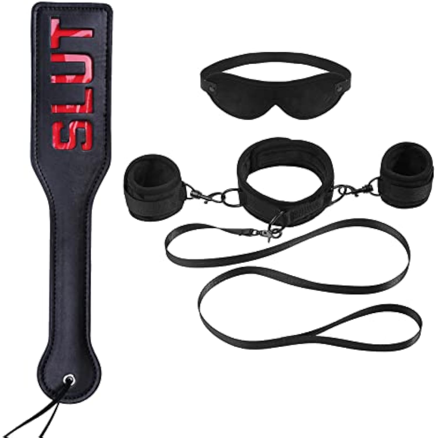 Soft Collar With Lead Set, Bondage Handcuffs Blindfold And Slut Spanking Paddle For Adults Bdsm Restraint Sex Toys