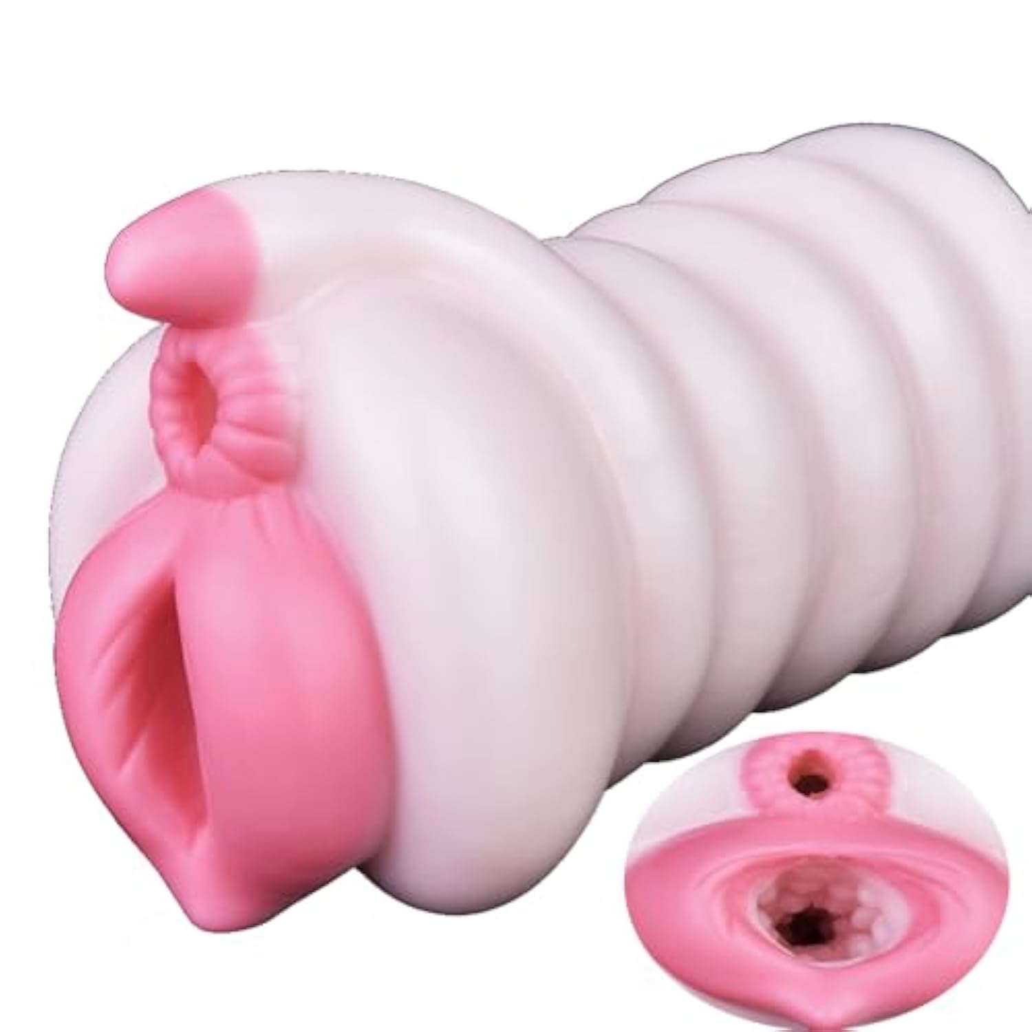 Soft Lifelike Fantasy Pink Unique Design 2 In 1 Male Masturbator Silicone Men Stroker Male Sex Toy Adult Sex Product For Men Couple Liquid Silicone Made Textured Tunnels Waterproof Flexible