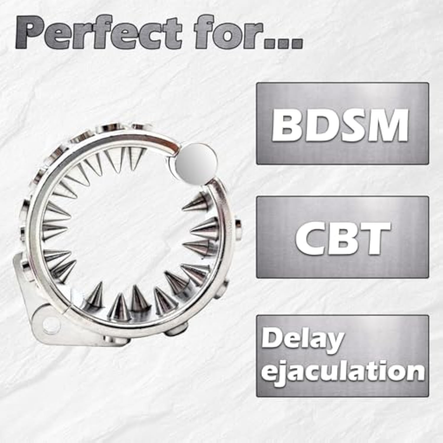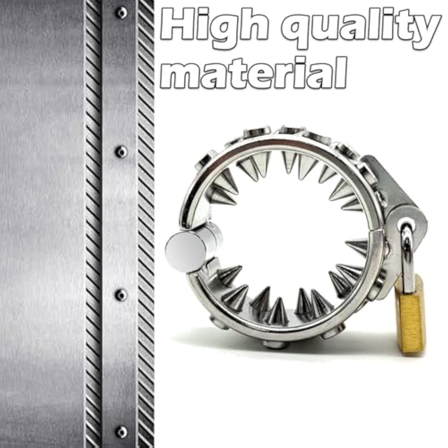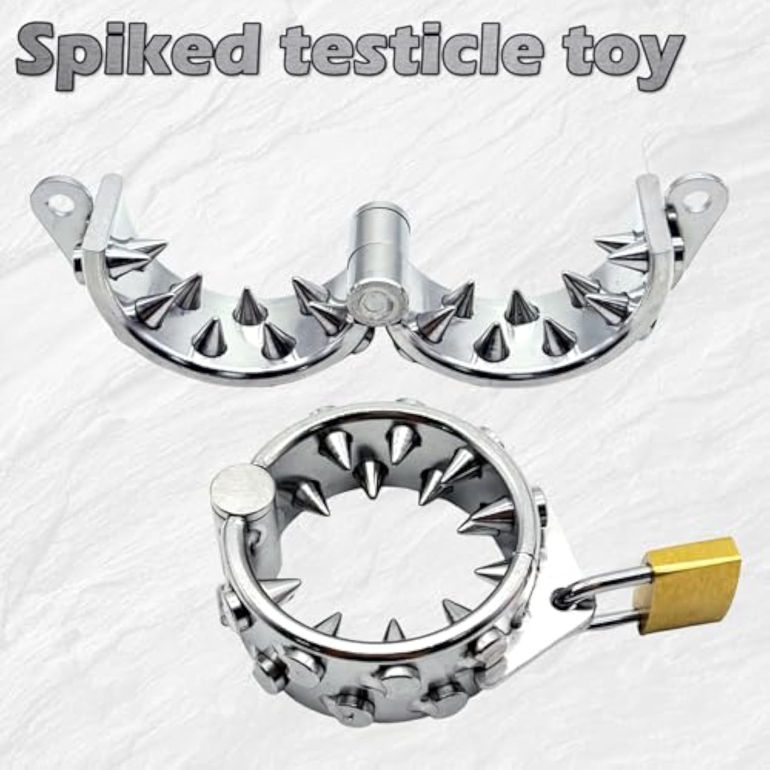 | ?Made Of Metal?This Testicle Restraint With Spikes Is Made Of Stainless Steel Material That Won'T Rust And Is Sturdy And Reliable! | | ?Suitable For Sex Games?This Spiked Scrotal Bondage Ring Is Also Great For Use In Sex Play. Use It To Bind Your Partner! It Will Be Very Difficult To Escape Without The Key! Make Him Your Submissive Slave! | | ?Easy To Clean?This Cbt Stainless Steel Scrotal Weight Trainer Is Not Afraid Of Water, Will Not Rust And Is Easy To Clean. Simply Wash It With Water Or Soap, Dry It Off And Continue To Use It Or Keep It In The Shade! | | ?Designed For Bdsm?This Spike Covered Testicular Bondage Device Is An Absolute Delight For Players Who Enjoy Bdsm And Cbt! Its Self-Weight Provides Excellent Weight Training For The Penis And Scrotum, And The Spikes Inside Give The Scrotum A Different Kind Of Pain And Pleasure, But They Never Scratch The Skin! | | ?Neutral Packaging?We Will Be Using Neutral Packaging For This Male Chastity Device, No Product Information Will Be Displayed On The Package And No One Will Know What You Have Bought! | |