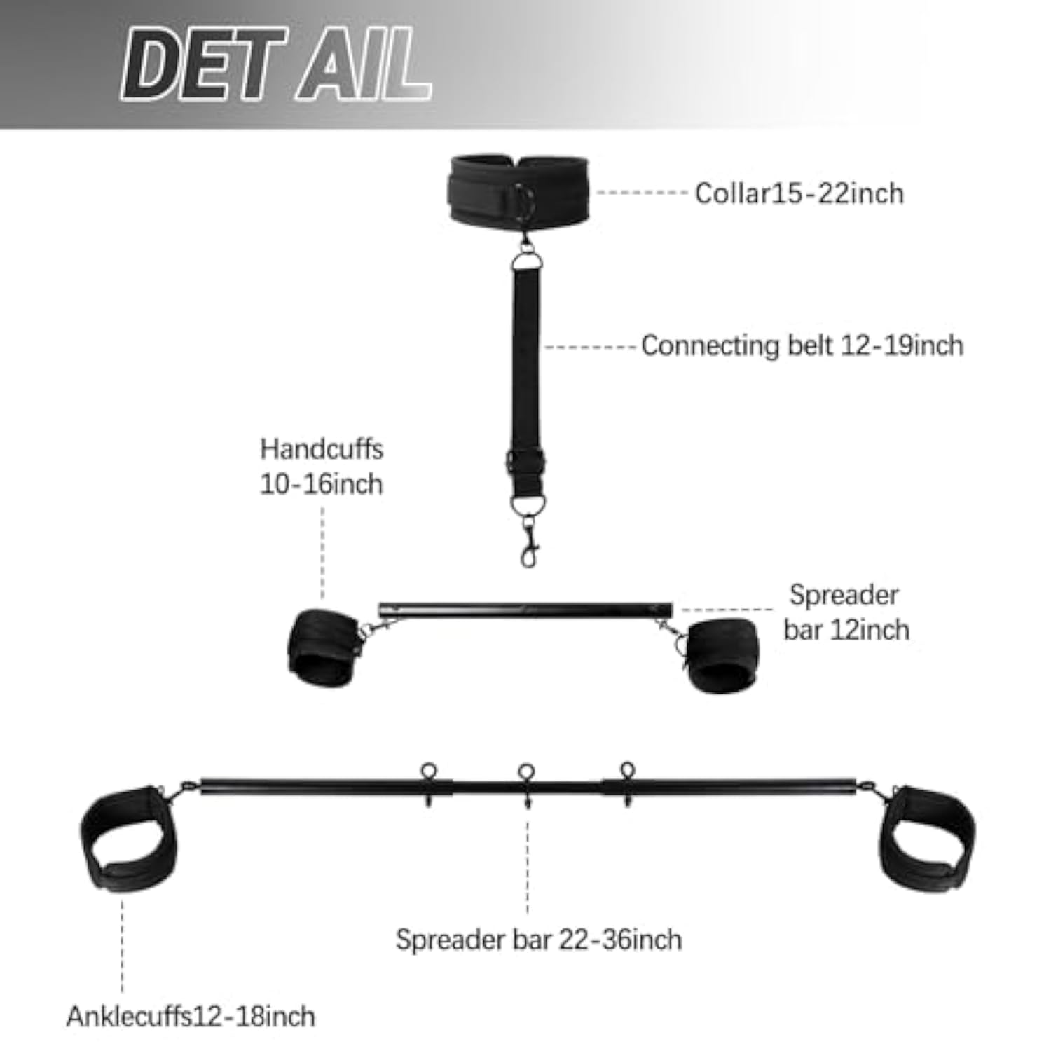 | Bondage Passion, Desire Unleashed: Experience The Ultimate Bondage Game With This Adjustable Cuffs And Collar! Made From Comfortable Imported Nylon Material, It Provides An Exquisite Sense Of Restriction That Will Indulge Your Inner Desires For Bondage Play. | | Rigidity And Endurance Unmatched: The Spreader Bar Are Crafted From Metal, Ensuring Unyielding Durability. Whether You'Re Embarking On An Outdoor Adventure Or Hosting A Private Session, This Bondage Gear Offers Superior Restraint, Allowing You To Fully Unleash Your Carnal Desires. | | Dominate And Explore: Sexual Bondage Allows You To Take Control Of Your Partner'S Hands, Legs, And Collar, Indulging In Light Sm Experiences That Add A Thrilling Edge To Your Sexual Encounters. This Sex Toy Offers A Unique Way To Spice Up Your Love Life And Explore Newfound Pleasures With Your Partner. | | Discretion : This Bdsm Adult Sex Toys Kit Comes Discretely Packaged For Easy Storage And Privacy. Whether You'Re Self-Pleasuring Or Treating Your Lover, The Privacy Factor Ensures That Your Forbidden Desires Remain Just Between The Two Of You. | | Upgrade Spreader Bar: Products Include Two Metal Spreader Bar,Four Adjustable Cuffs And One Neck Collar. Unleash Your Inner Desires And Embark On A Journey Of Bondage Exploration With Your Partner. Purchase This Bdsm Adult Sex Toys Kit Today And Unlock A New Level Of Passion In Your Relationship! | |