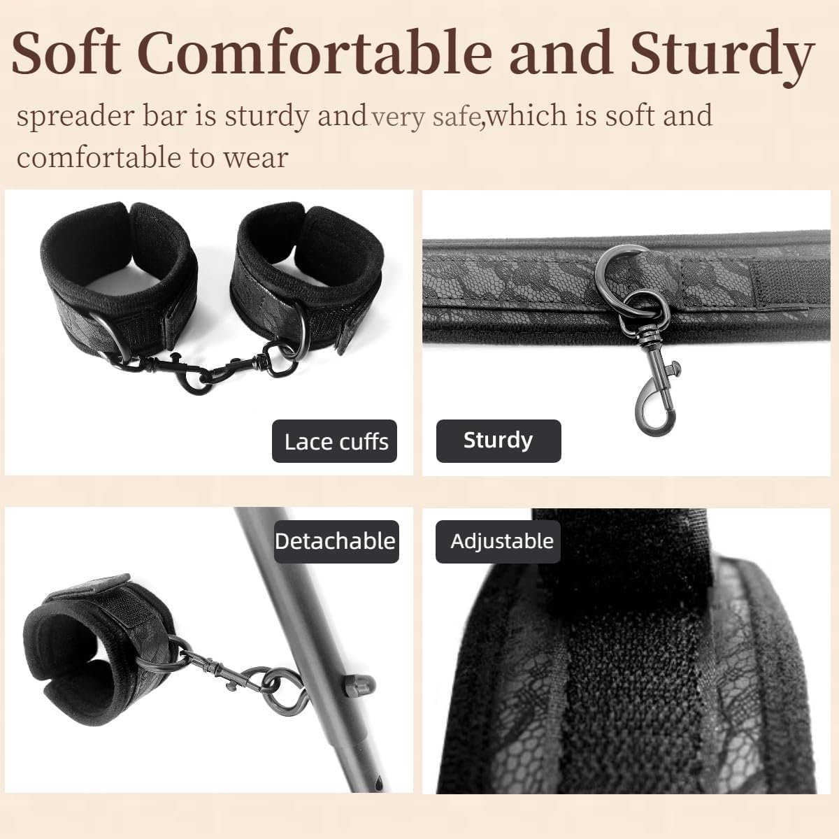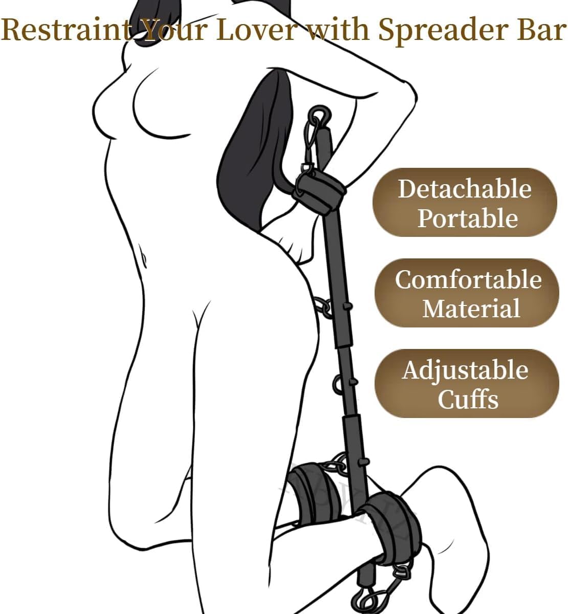 Adjustable Spreader Bar with Hand & Ankle Cuffs – Bondage Restraints for Couples