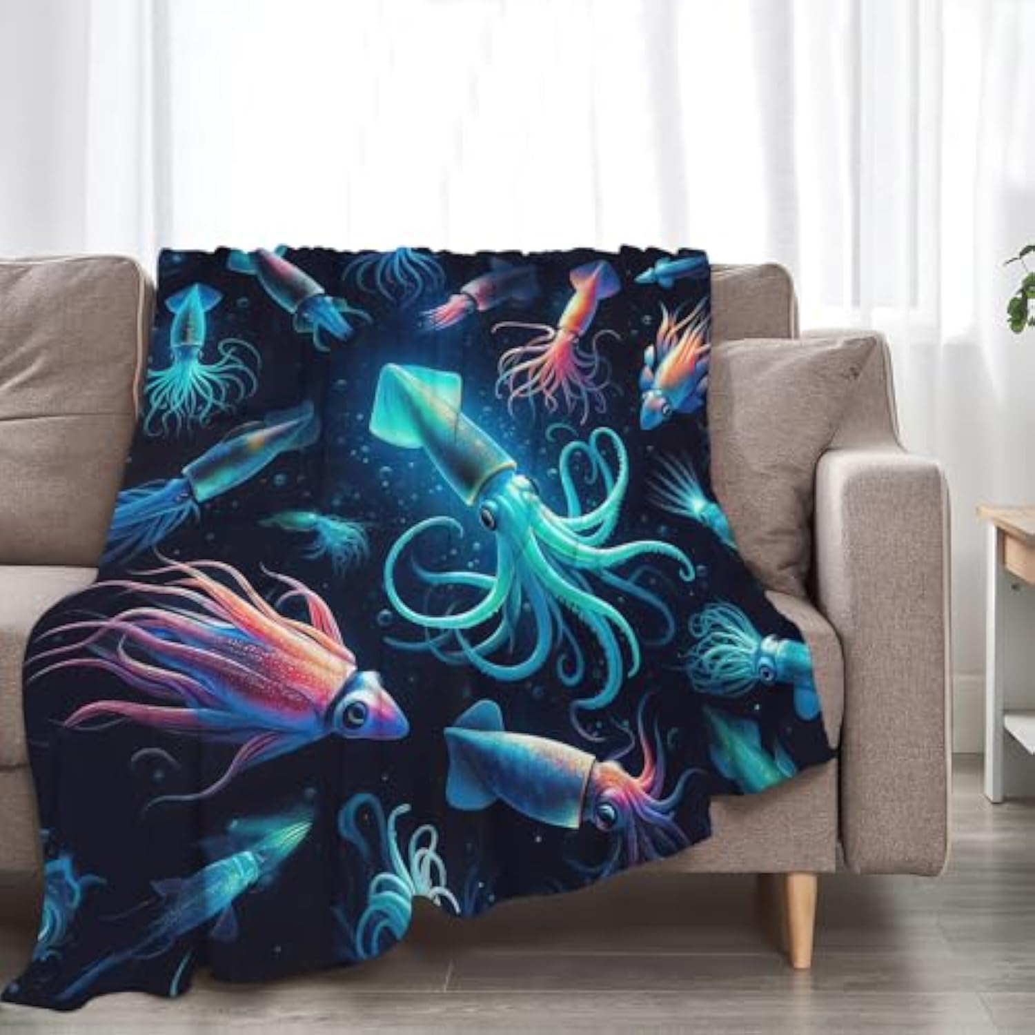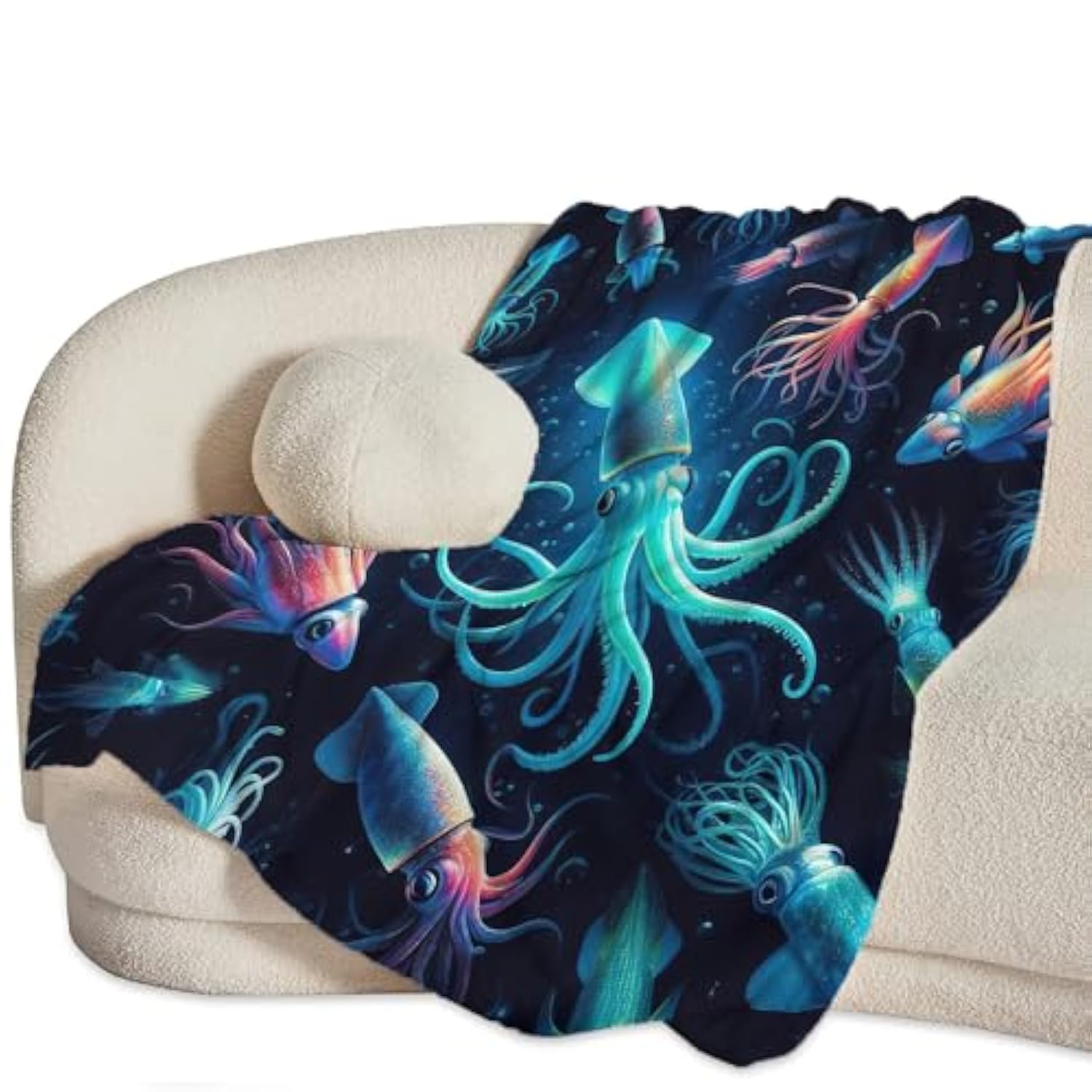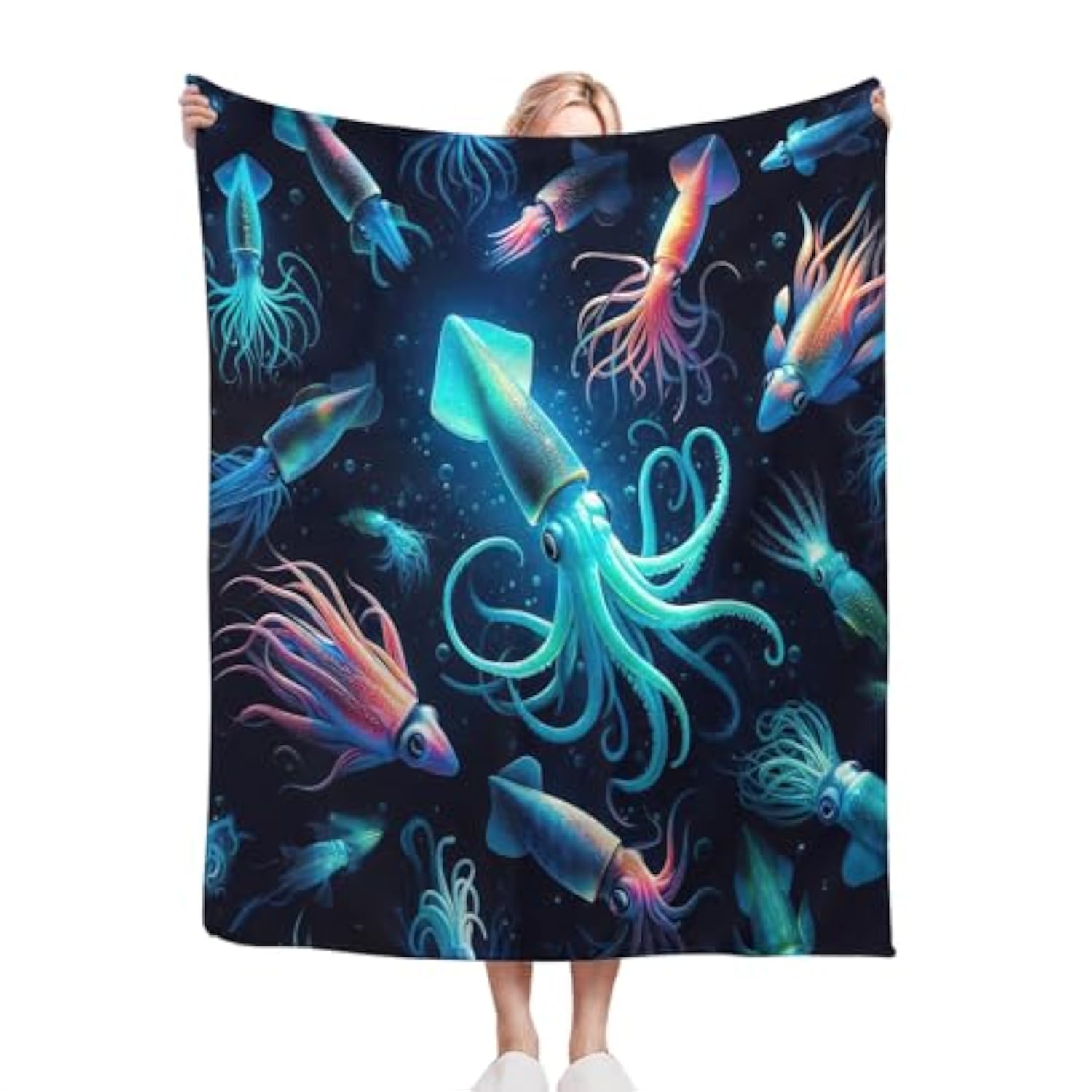 Squid Blanket Decor Gifts For Squid Lovers, Flannel Fleece Fuzzy Throw Blankets, Soft Warm Cozy Plush Ocean Animal Blanket For Bed Couch Living Room Stuff Decoration For Kids Adult 50"X40"