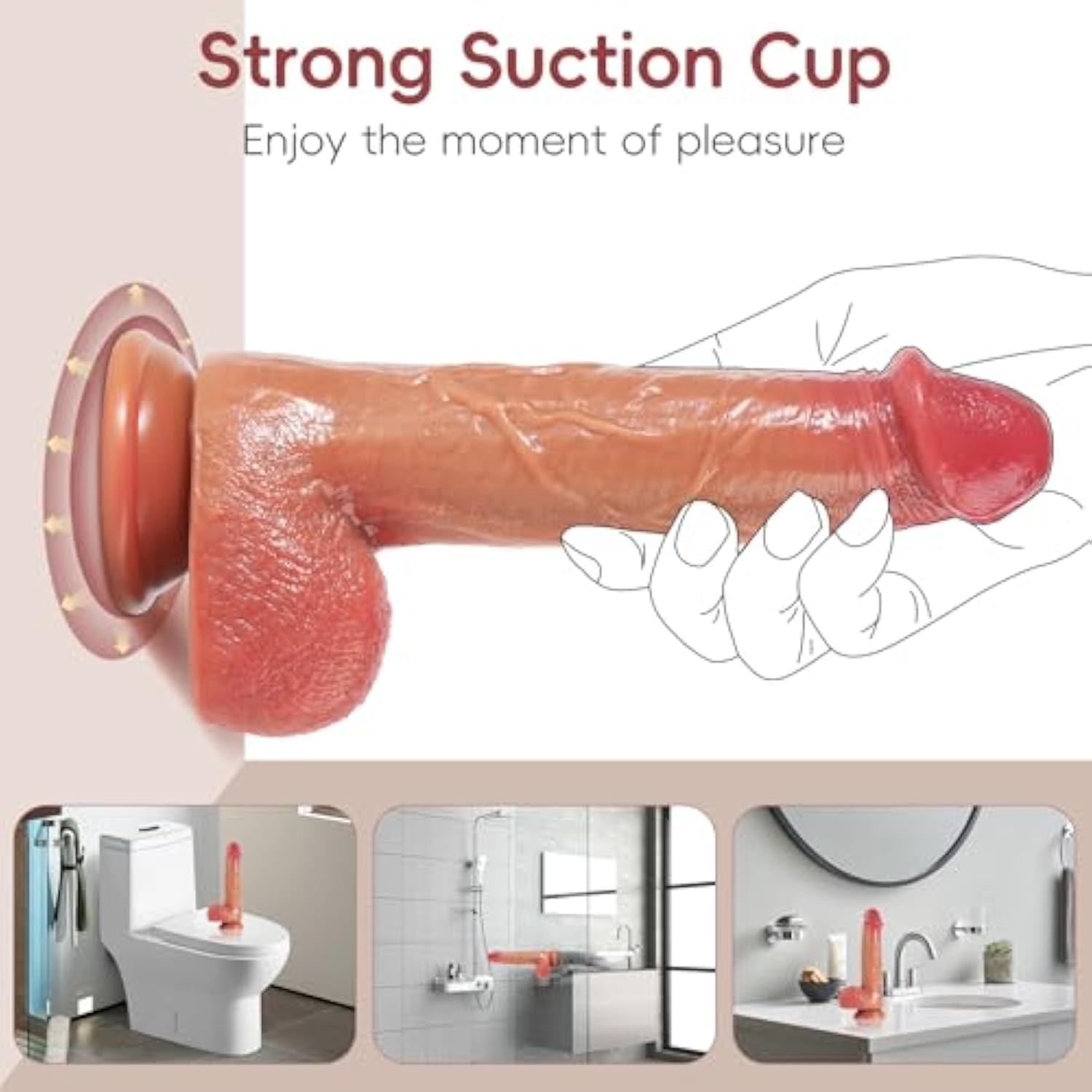 - ?Strong Suction Cup Dildo?: The Dildo Can Free Your Hands And You Can Place It On Any Smooth Surface, Such As Wall, Floor, Bathtub, Chair. No Matter How You Twist, The Suction Cup Will Be Firmly Attached To It, And Will Not Interrupt Your Pleasure
