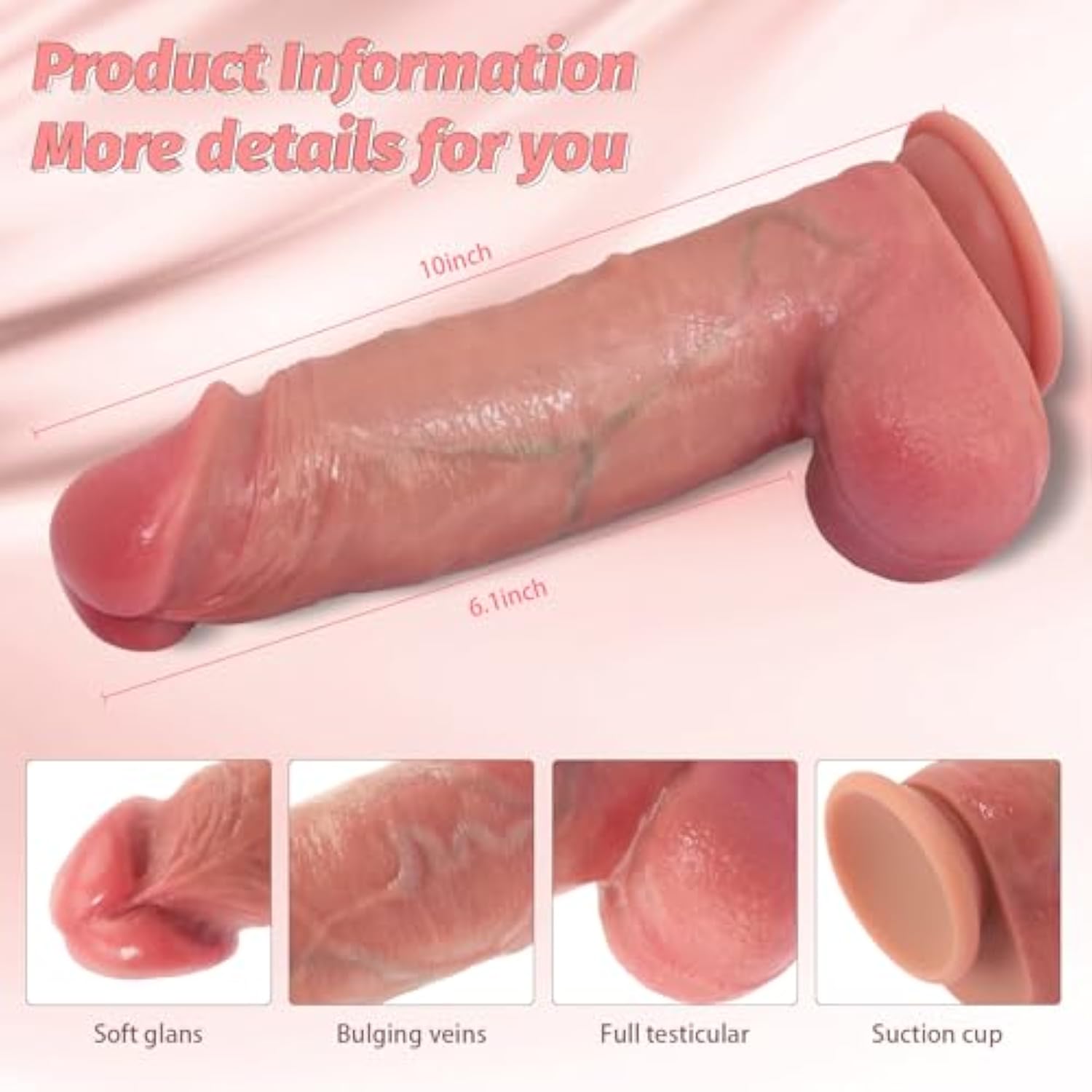 - ?Silicone Huge Thick Dildo?The Silicone Dildo Is Intricately Detailed With Texture, Lines, Pores, And Wrinkles. Check Out The Zoomed In Picture Of The Head To See What I Mean. The Shape Of The Huge Dildo Is Quite Satisfying. It Has A Plump, Full, Muscular Shaft, With A Beautifully Contoured Head Glans. The Size Is Bit Enough To Fill You Up, But Not So Big As To Be Unrealistic. Measures 9.85" In Length (7.1" Insertable,) And 1.9" Width.