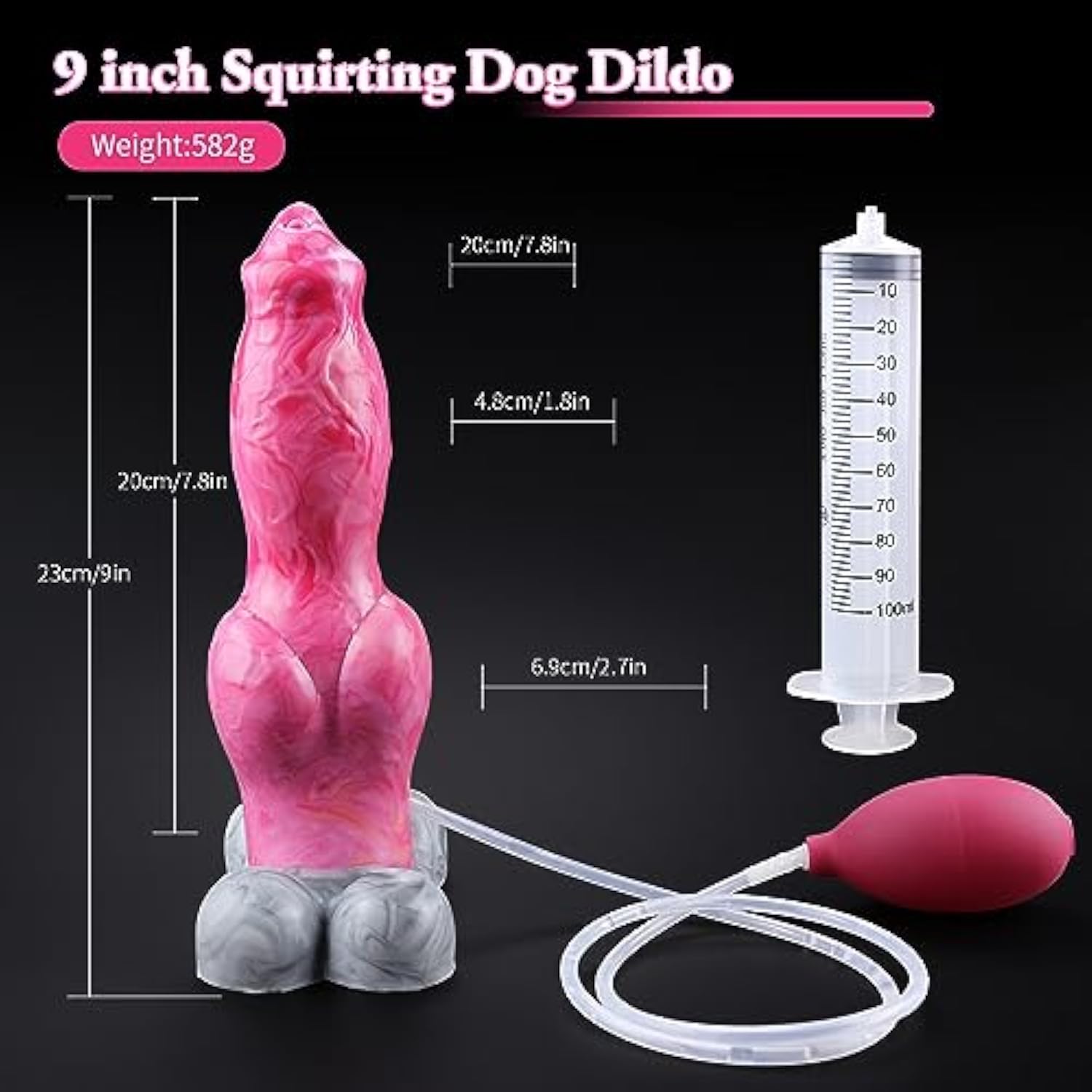 Squirting Dog Dildo 9 Inch Realistic Huge Monster Dildos With Knot And Suction Cup, Big Pink Silicone Thick Dragon Dildo Anal Toy For Women And Men