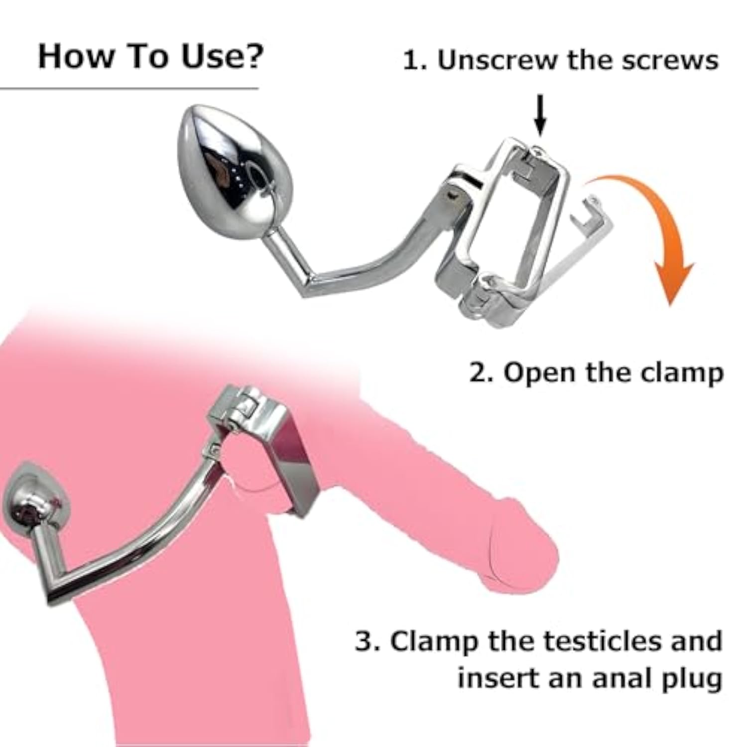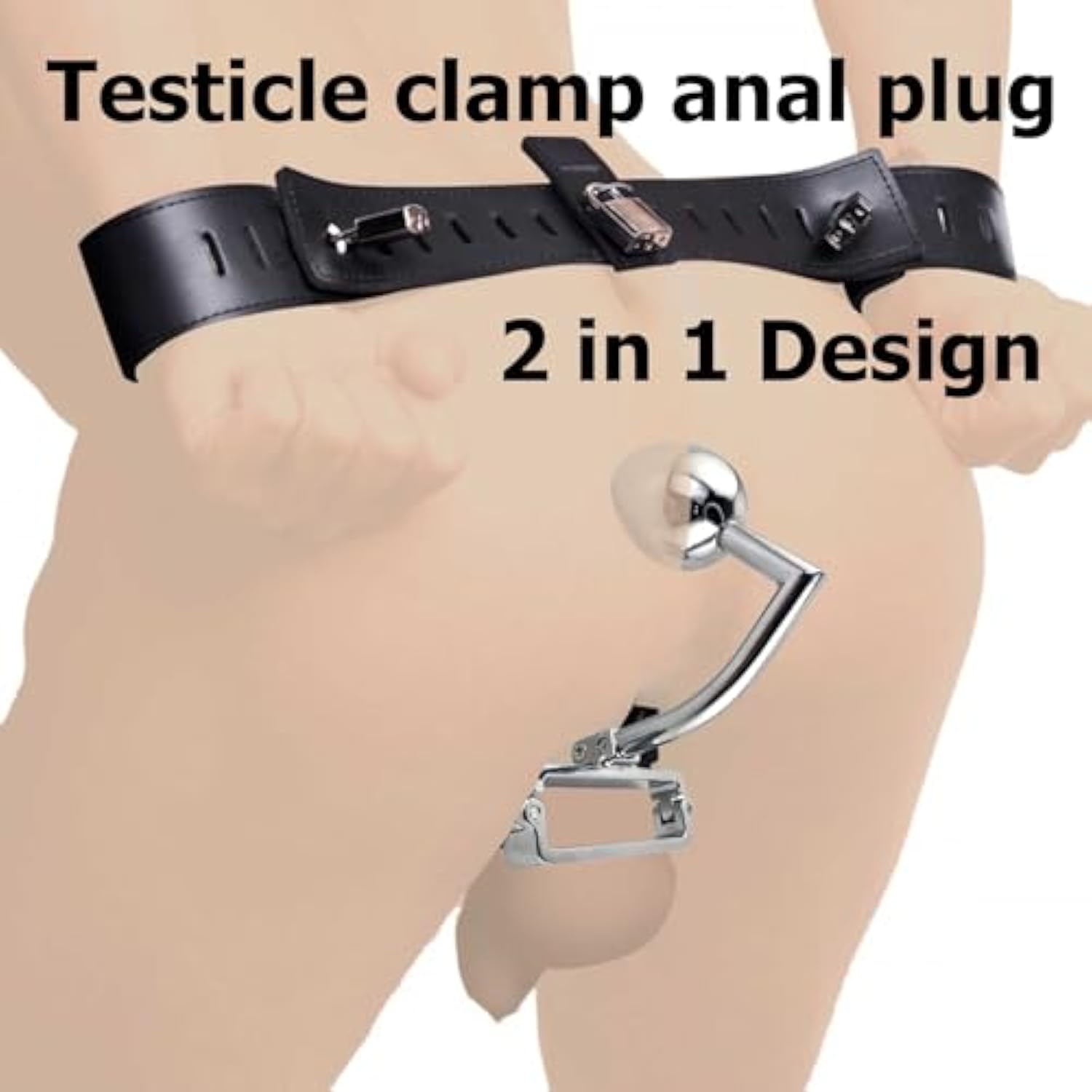 Stainless Steel Cbt Testicle Crusher 2-In-1 Butt Plug Anal Hook Scrotum Stretcher With Locking Bondage Chastity Device Bdsm Training Kit For Kinky Advanced Sensation Play Male Torture Games Couples