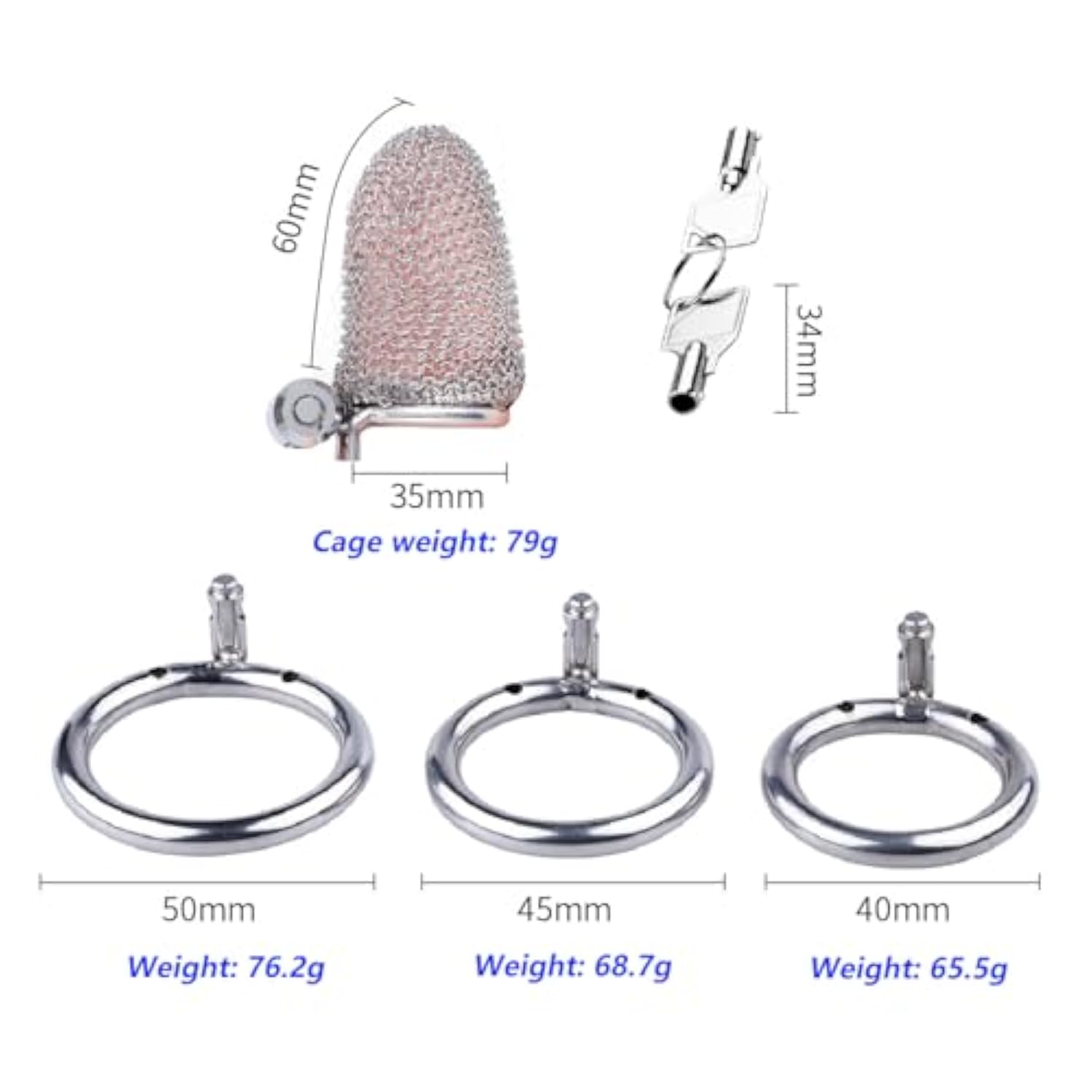 | Breathable Mesh Chastity Cage : This Innovative Male Chastity Device Features Flexible Stainless Steel Mesh That Conforms To Your Shape For All-Day Comfort. The Lightweight Chastity Cage Prevents Visible Bulges. Cock Cgae | | Stainless Steel Construction: Crafted From High-Quality Stainless Steel, This Chastity Device Maintains A Sleek, Modern Appearance, Strong And Durable. Penis Cage | | Quick-Lock Security Design: Secure Your Male Chastity Devices In Seconds With The One-Handed Locking Mechanism. Simply Press To Lock And Twist To Release - Perfect For Convenient Yet Secure Containment During Play.Bondage Gear Accessories | | 1 Size Included: 1.97" Base Rings To Customize Your Chastity Cage Fit. Our Sizing Guide Helps Select The Perfect Stainless Steel Adult Toys For Your Body Type. Male Chastity | | Small 2.36" Short Cage: Cage Length About 60Mm (2.36In) The Low-Profile Chastity Devices Design Ensures Comfort During Extended Wear. Maintaining Effective Restraint | |