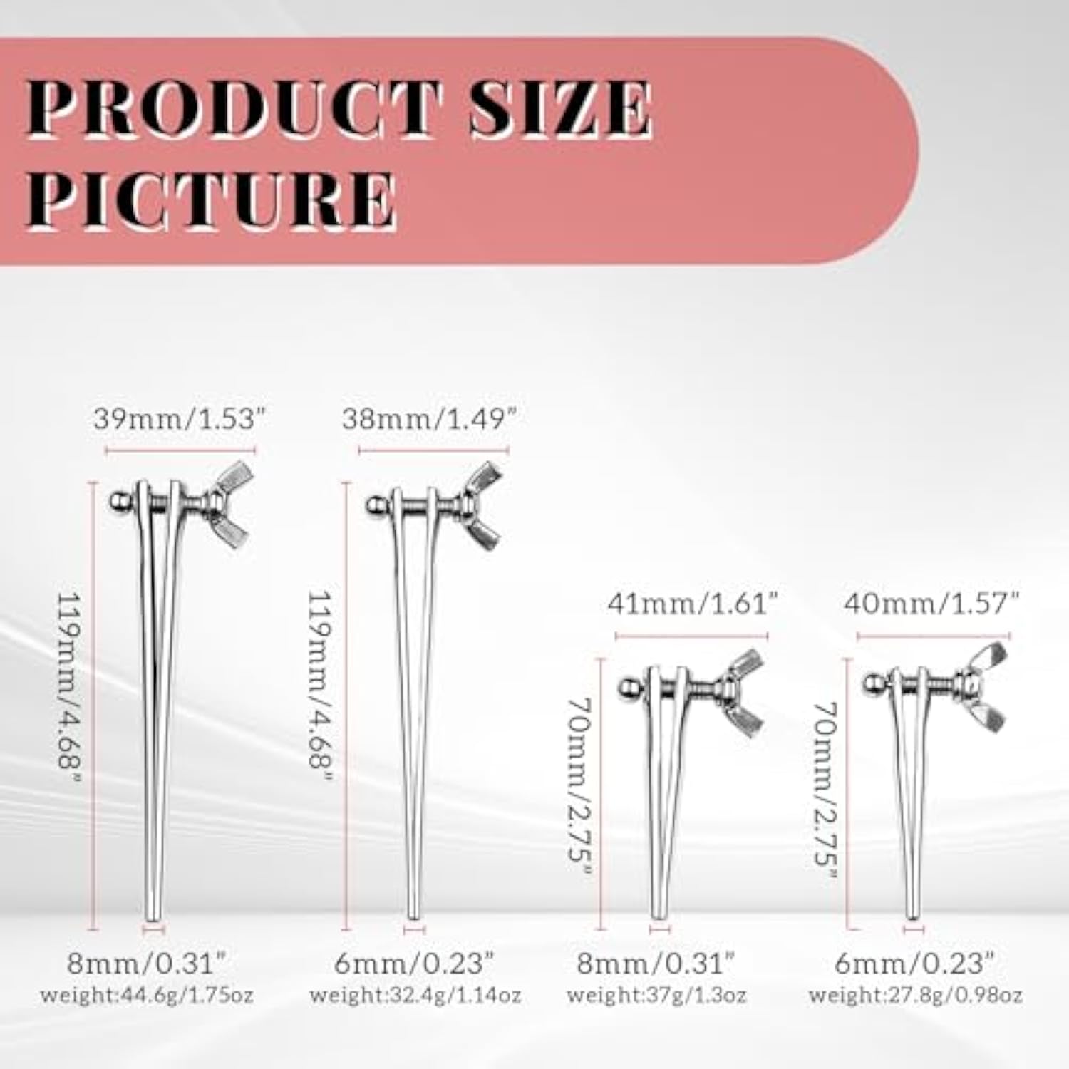 | Adjustable Size: This Adult Urethral Plug Of Ours Is Adjustable In Size. Adjust The Size Of The Urethra By Controlling The Knurled Screw, Please Pay Attention To The Strength And Take Your Time During Use. (Please Refer To The Picture For Exact Size). | | Rounded Hollow/Solid Design: The Head Of The Metal Penis Plug Has A Rounded Design, Smooth And Durable, Easy To Use, And There Are Two Styles Of Hollow And Solid For Your Choice. Ergonomic Design Principle. | | Stainless Steel Material: The Penis Spreader Is Made Of High Quality Stainless Steel, Fine Workmanship, Smooth Surface, No Burrs, No Rust, No Skin Irritation, Easy To Clean. (Short - Solid, Long - Hollow). | | Easy To Carry: The Small And Exquisite Urethral Dilator Is Easy To Carry, Can Be Worn Casually And Not Easy To Be Found. If You Find Any Discomfort During Use, Please Stop Using It Immediately. (Please Ask Tap Water To Clean It Before And After Use). | | Hollow Design Penis Plug, Easy To Operate, Easy To Use, Easy To Grip, Not Easy To Slip Off When Using, Unique Design. | |