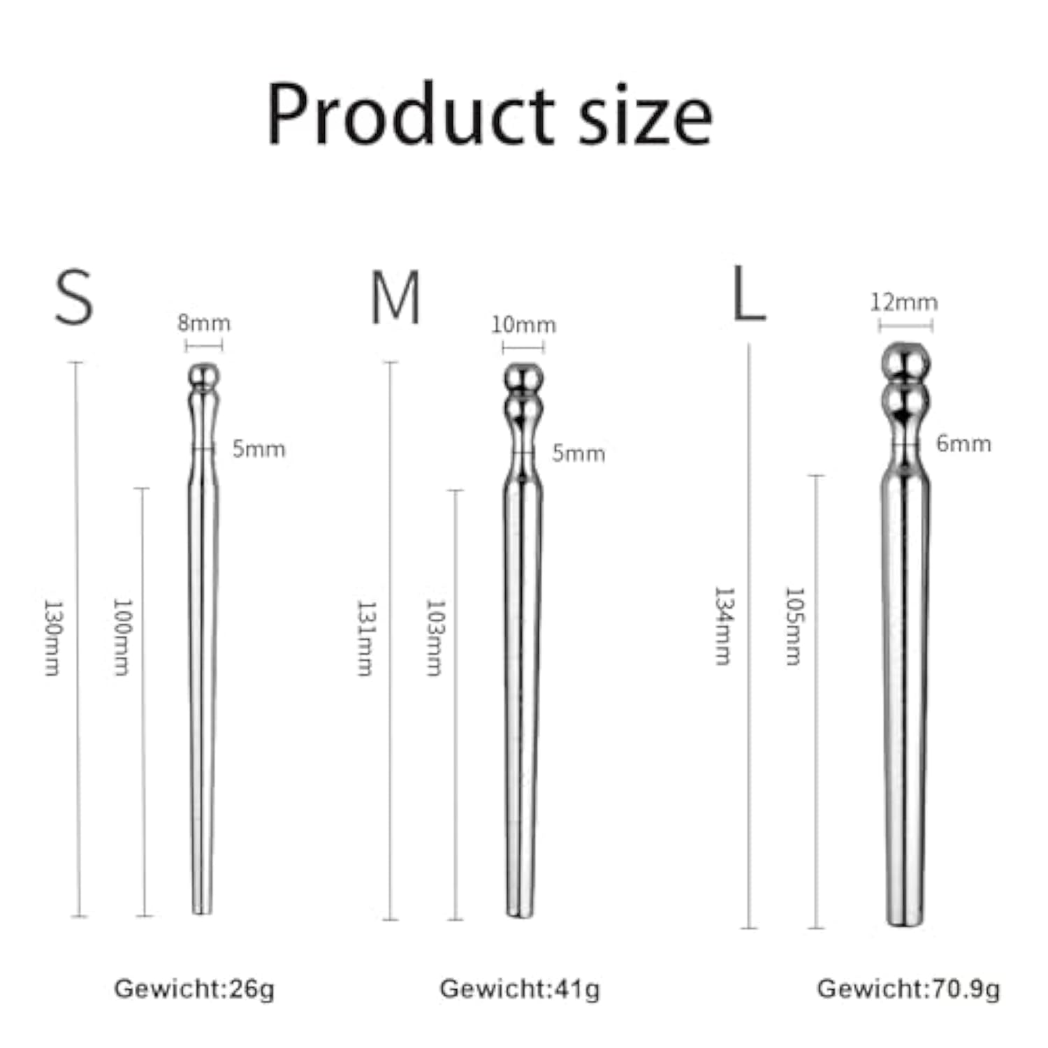 | Scale Design: The Male Urethral Dilator Comes With A Scale To Measure The Insertion Depth Of The Dilator. The Scale Can Help You Understand The Degree Of Insertion Of The Dilator Into The Urethra And Control The Depth Of Urethral Dilation. | | Safe Material: The Urethral Sounding Is Made Of Stainless Steel, Smooth And Without Thorns, No Sharp Edges, Safe And Durable, Easy To Stretch, Comfortable And Simple To Use. | | Ergonomics: The Tapered Round Head Makes Insertion Easier, The Penis Plug Has A Hollow Design, Convenient Urination, Comfortable And Safe To Use, Suitable For Long-Term Wear. Try It With Your Partner And Explore New Stimulation. | | Multiple Sizes: We Provide You With Three Sizes (S/M/L) To Meet The Needs And Comfort Of Different Users. You Can Choose The Most Suitable Size According To Your Experience And Adaptability. | | Careful Packaging: Use Neutral Packaging To Ensure That There Is No Product-Related Text On The Packaging. Please Rest Assured To Buy. If You Have Any Questions, Please