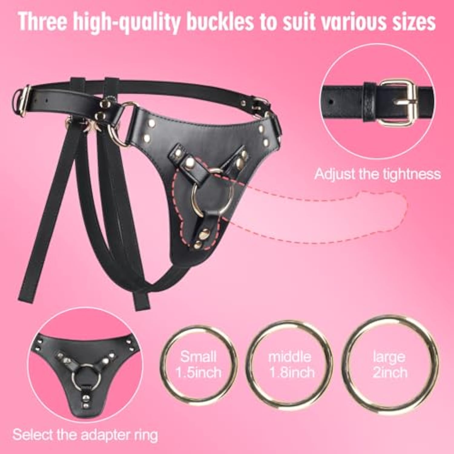| Embark On Your Strap On Dildo Adventure With Confidence! Our Premium Strap On Harness Is Expertly Crafted To Deliver Unmatched Comfort, Stability, And Versatility, Ensuring A Seamless Experience For Both Partners. Whether You'Re A Beginner Or A Seasoned Enthusiast, This Harness Is Designed To Enhance Intimacy With Effortless Adjustability And Superior Support. | | Our Strap On Dildo Customizable Fit – Adjustable Waist And Leg Straps Personalized Fit For All Body Types.Three O-Ring System – Compatible With Most Flared-Base Or Balls-Based Dildos, Allowing You To Switch Between Sizes For Varied Sensations.Superior Comfort – Luxurious Thick Garment Strap On Harness Leather Provide Durability, While The Backing Prevents Chafing And Discomfort During Use. | | Ergonomic Design - Contoured Harness And Wide Support Straps Maximize Control And Thrust, Keeping Everything Securely In Place. Multiple Wearing Styles - Oversized D-Rings Allow You To Wear The Harness High On The Hips Or Low On The Waist, Depending On Your Movement. Skin-Friendly - Coated Metal Hardware (O-Rings, Rivets And Snaps) Ensures No Irritation Even For Those With Nickel Allergies. The Harness Rivets And Metal D-Buckles Are Rust-Resistant And Can Be Easily Cleaned After Use. | | Perfect For Couples Lesbians Gay Man Play.Whether You'Re Exploring Pegging, Role Reversal, Or Double Penetration, This Strap On Harness Delivers Secure, Powerful Performance While Keeping Comfort A Top Priority. The Snap-In Ring System Makes Swapping Attachments Effortless, So You Can Experiment With Different Dildos For Endless Pleasure. | | Upgrade Your Strap-On Experience Now - Order Now And You'Ll See The Difference! Easily Control Your Passion And Convenient To Use, Compatible With Most Flared Base Dildos, No Need To Worry About Size Issues. | |