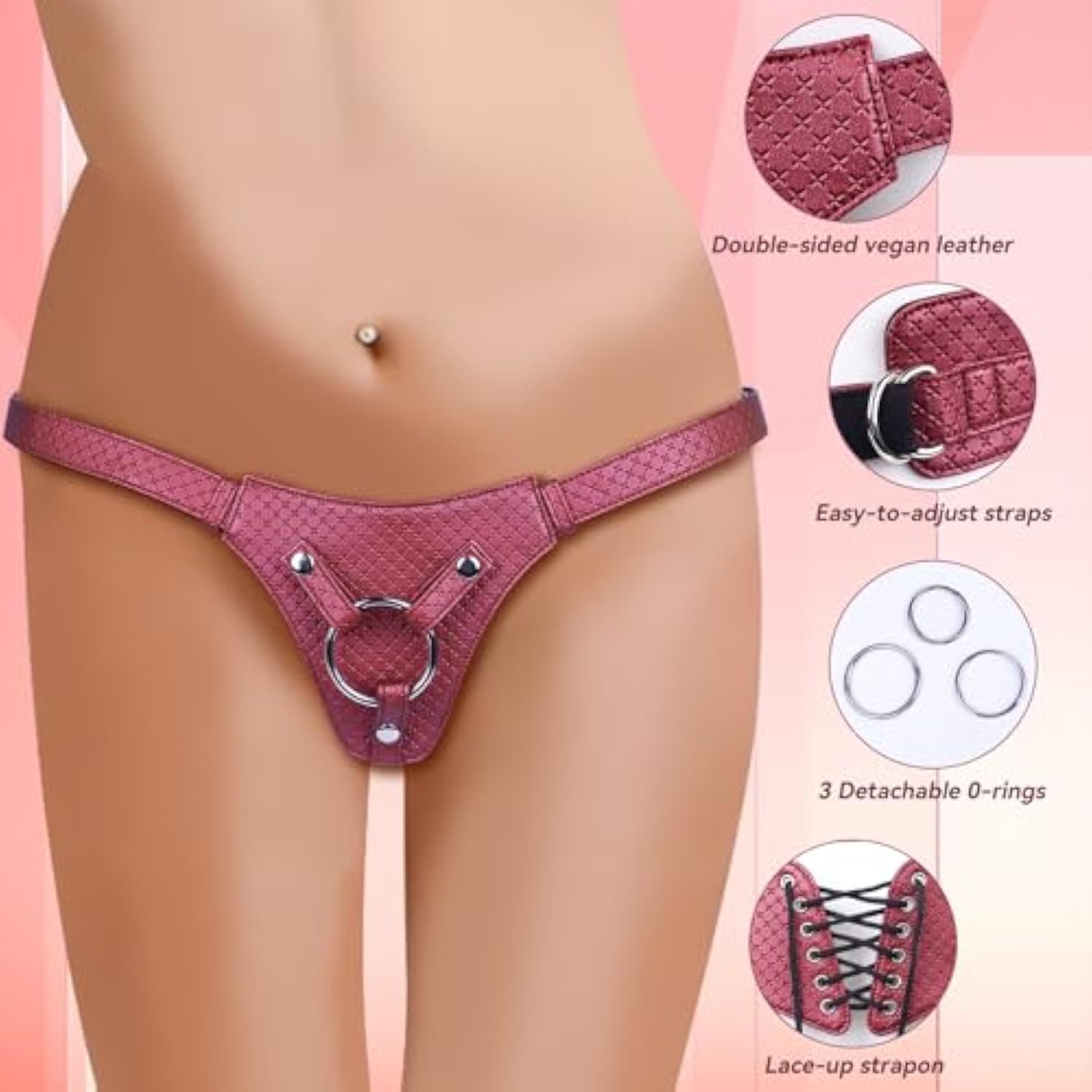 | Don'T Shy Away From Your Fantasies Any Longer. This Entry-Level Strap On Harness Gives A Fresh Jumpstart To Your Love Life. It Is Stylish And Suitable For Those New To Strap-On Play And Pegging. Easy To Get On And Comfortable To Wear. The Four-Way Adjustable Straps Fit Hips Up To 64 Inches. It Accommodates Most Dildos With Flared Bases And Includes 3 Interchangeable Metal O-Rings | | Our Vegan-Friendly Strap On Harness Is Made Of Soft Leather, That Is Gentle On The Skin, Comfortable And Durable. Each Strap Is Adjustable With D-Rings, So It Can Fit A Variety Of Body Shapes. Unlike Belt Buckles, They Are Easily Adjusted To The Nearest Millimeter. Once Adjusted To Your Size, You Don'T Need To Touch Them Again - They Keep The Harness, And Therefore The Dildo, In Place | | The Strap On Sex Toy Comes With 3 Metal O-Rings (1.5", 1.7", 1.9"), They Allow You To Use Dildos Of Different Sizes. Start With The Small Dildo And, Once Your Inexperienced Opening Has Been Properly Romanced, Switch It Up To A More Hefty Piece With The Larger Dong. The Nickel-Free Metal Rings Are Sized To Fit Most Standard Dildo Sizes That Have Balls Or A Flared Base, While The Snap-In Design Allows You To Swap Out Your Own Ring For Even More Size Options | | This Enticing Corset Back Dildo Harness Is Fully Adjustable, Sliding D-Rings At The Hips, And A Lace-Up Corset-Style Closure At The Back, You Can Find Your Ideal Fit. The Corset Back Arches And Curves Around Your Body, Creating An Irresistible Heart Shape | | The Leather Sex Harness Can Be Cleaned With A Sponge Or Flannel, Taking Care To Dry It Well After Cleaning And Not Soaking The Leather. Share New Experiences And Create New Levels Of Pleasure When You Try Pegging, Anal Play, Bdsm Play, Mutual Stimulation, Or Fantasy Role Play. Strap-On Play Allows Partners To Switch Roles, Offering A Refreshing Change In Power Dynamics And Adding Excitement | |