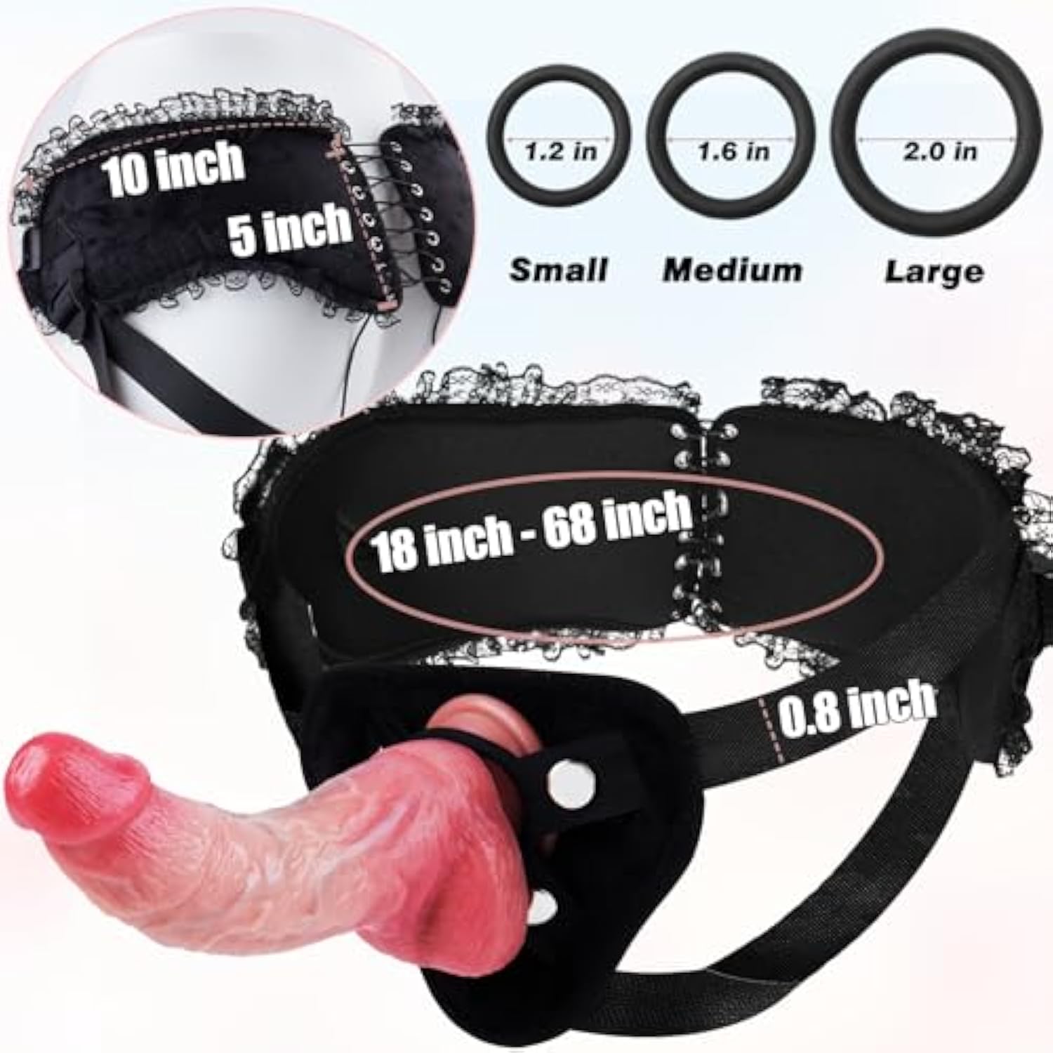 | Strap On Sex Toy Design For Varied Pleasure: The Wearable Strapon Dildo With Harness Set Consisting Of An 8 Inch Powerful Vibrating Realistic Dildo And An Upgraded Widened Adjustable Lace Strap On Harness For Superior Comfort And Ergonomic Fit. The Vibrating Strap On Sex Toy Designed For Lesbian Couples, Pegging, And Solo Play To Have More Fun | | Ultra Realistic Dildo With Powerful Suction Cup: This Realistic Dildo Looks Exactly Like A Real Penis, With Sleek And Smooth Glans, Lifelike Veins, Wrinkled Balls And Thick Shaft. The Silicone Dildo Sex Toys Will Bring You A Whole New Level Of Stimulation. The Couples Sex Toys Features A Strong Suction Cup Base That Firmly Adheres To Any Smooth Surface, Enabling Hands-Free Pleasure During Solo Play. Whether Used With The Harness Or On Its Own, The Flexible Design Adapts To Your Needs | | Upgraded Adjustable Lace Strap On Hareness: Ergonomic Extra-Wide Lace Straps (5"*20" Wide ) Lock Tightly For Rough, Adapt To Different Body Shapes(18"-35" Waist) Adjustable Straps Grip Thighs Securely While Plush Velvetinner Lining Cushions Every Thrust To Keep The Anal Dildos In Place. Strap On Dildo And Hands-Free Pounding, Suitable Women Sex Toys For Couples, Lesbian Sex Toys, And Sex Toy For Men Pegging Dildo Lovers | | 9 Vibration Modes For Strap-On Play: The Liquid Silicone Dildo 8 Inch Total Length (6 Inch Insertable) And Ultra-Soft, Body-Safe, Perfect For G-Spot Or Anal Stimulation. This Thick Dildo Comes With A Realistic Dildo Head And Lifelike Skin Texture, Which Is Easy To Insert. It Has 9 Vibration Modes From Gentle Pulses To Intense Rhythms, Providing An Excellent Sexual Pleasure Tool For Women And Men Couple | | Wireless Remote