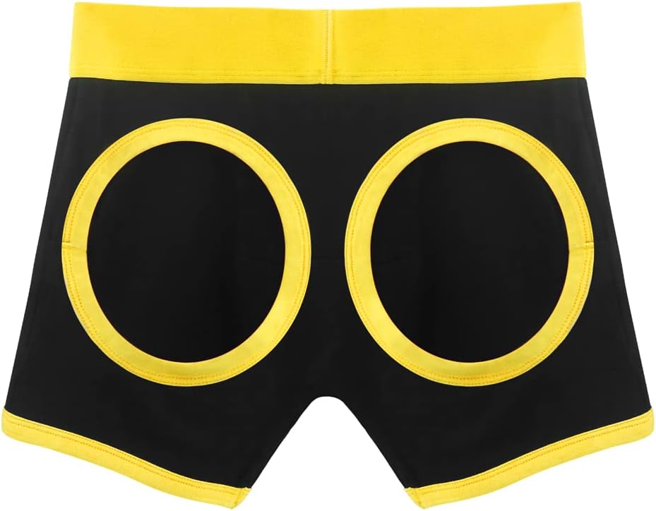 - This adult toy yellow-black design of the brief harness with a circle opening on the back designed.