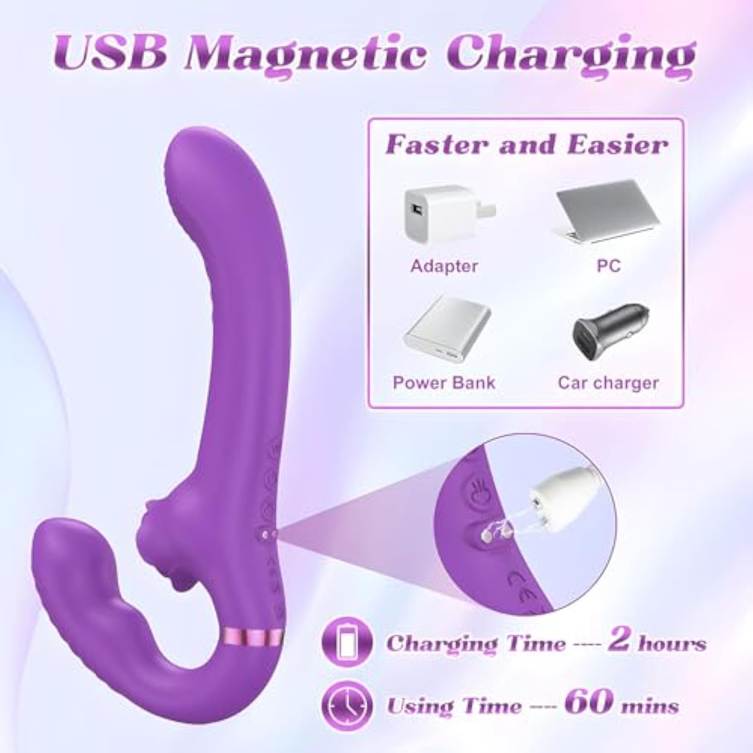 - ???Powerful 10 Vibration?The Dildo Vibrator With Dual Motors, Each With Their Own Independently Controlled 10-Speed Vibration, Which Means You Can Freely Combine The Vibration Modes Of This Strapless Strapon Dildo. You Can Stimulate Individual Parts, Like Clitoris, G Spot, And Anal, Or You Can Stimulate Two Parts Or Three Parts Together. The Powerful Vibrations Enhance The Pleasure For Both The Wearer And The Receiver.