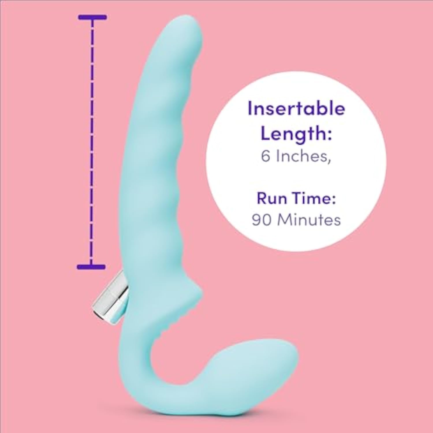 Strapless Strap On Vibrating Dildo - Flexible 7 Inch Dildo For Women - Curved Rippled Shaft For G-Spot Stimulation - Rechargeable Bullet Vibrator - Adult Sex Toy - Waterproof - Aqua